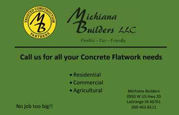 (574)354-0803 • 6223 8th Road | Plymouth We have Miraco Automatic Livestock Waterers WE NOW SELL LITTLE DUTCH BARNS ANIMAL SHELTERS Mon through Thursday 6am to 4pm | Friday 6am to 2:30pm | Closed Sat & Sun • Poly Coated Wire • 2-3/8” Oil Pipe • Board Fence • Centaur HTP Horse Rail • High Tensile Smooth Wire • High Tensile Barbed Wire • Woven Wire • Chain Link • Wood Privacy • Poly Vinyl Privacy & Ornamental • Installation • Repair • Delivery • Montana Post Pounder Rental • Brush Clearing Midwest Farm & Pet, LLC www.midwestfarmandpet.com (574) 646-2509 | 535 5B Rd.• Bremen, IN 46506 A DIFFERENCE YOU CAN SEE Trusted & Proven Performance • Livestock Feeds • Purina • Kalmbach • Tribute • ADM • Wild Bird Seed • Suet Cakes • Pet Food & Supplies • Food Plots • Lawn & Pond Supplies • Rodenticides $5 OFF Purchase of $25 or more In Store Only. One Per Visit.