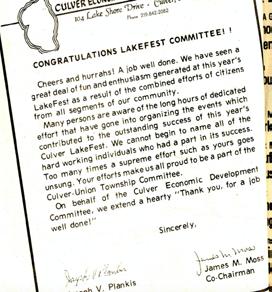 Four decades ago this summer, Lakefest began in the town of Culver, along the shores of Lake Maxinkuckee. In a town that enjoys celebrating tradition, Lakefest is indeed a pillar of summertime in Culver. To recognize the significance of 40 years of Lakefest, one only needs to turn back time to 1984, when the simplicity of an idea came full-circle into a town-wide event and the deep roots of Lakefest were planted.