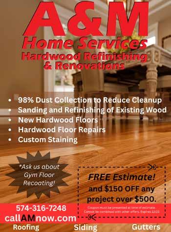 THE LAKES MAGAZINE / MAY 2023 / TownePost.com / 15 CLAYS FLOORING LOOKING TO BUY OR SELL? Rhonda S. Hurford Broker (574) 250-1835 rhuford@collinshomes.com Jeff Hurford Associate Broker (574) 250-3019 jhurford@collinshomes.com www.collinshomes.com YOUR HOMETOWN PROVEN PROFESSIONS! Mon.-Fri. 9-5:30 | Sat. 9-3 We Accept Cash, Check & Great Gifts for Mom