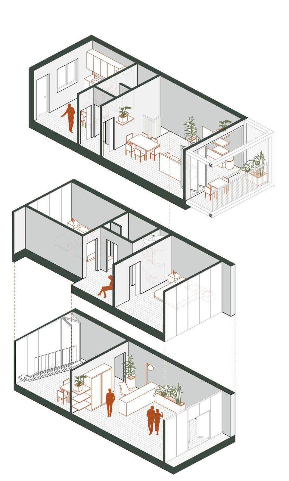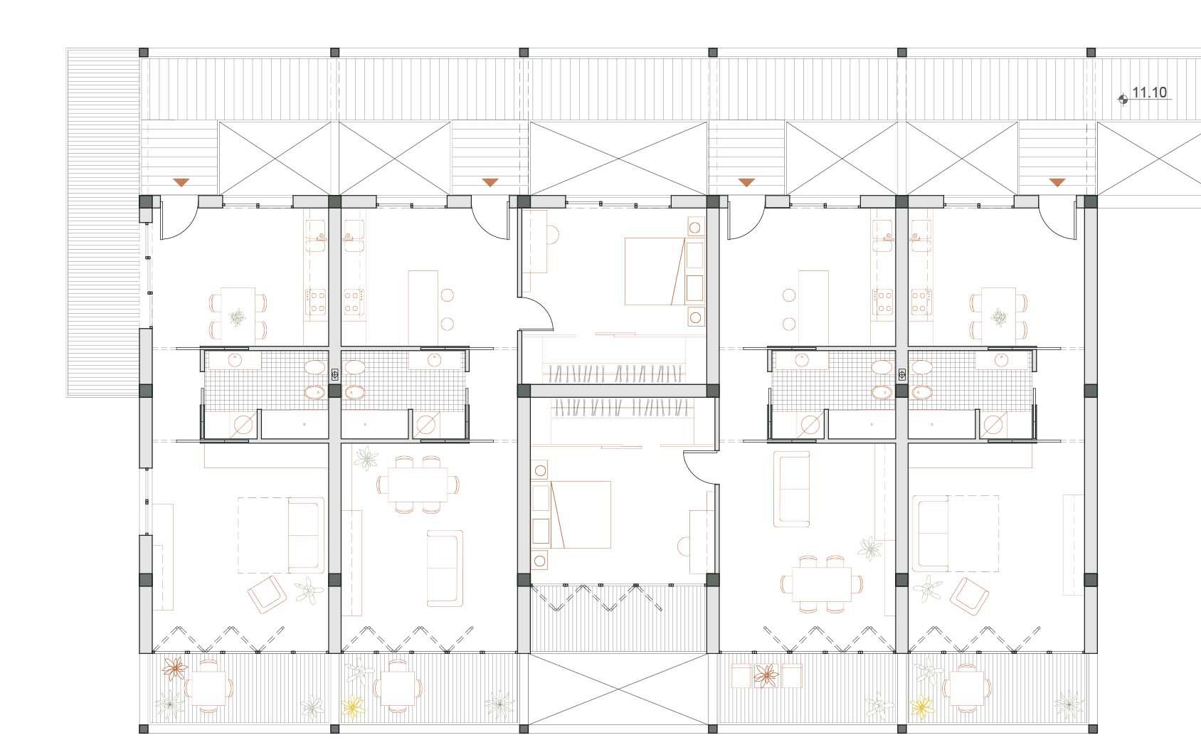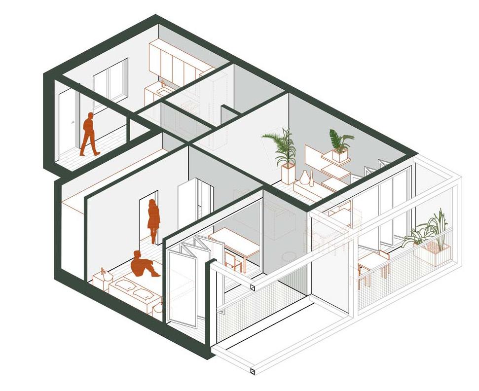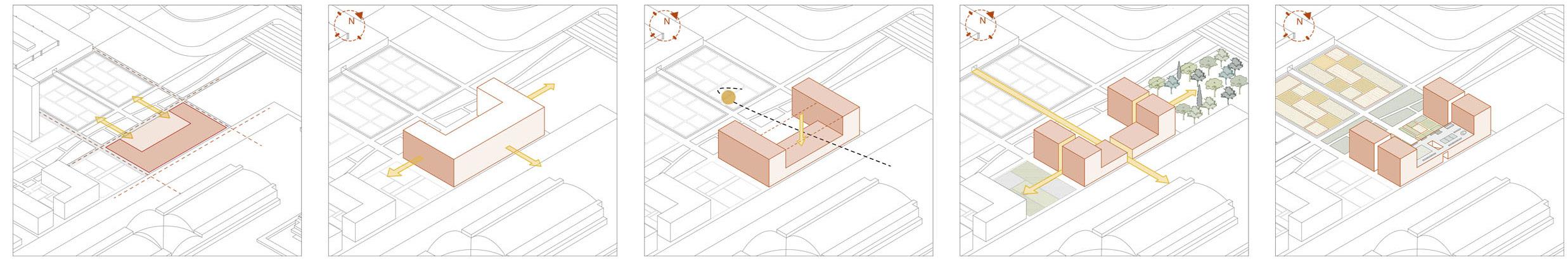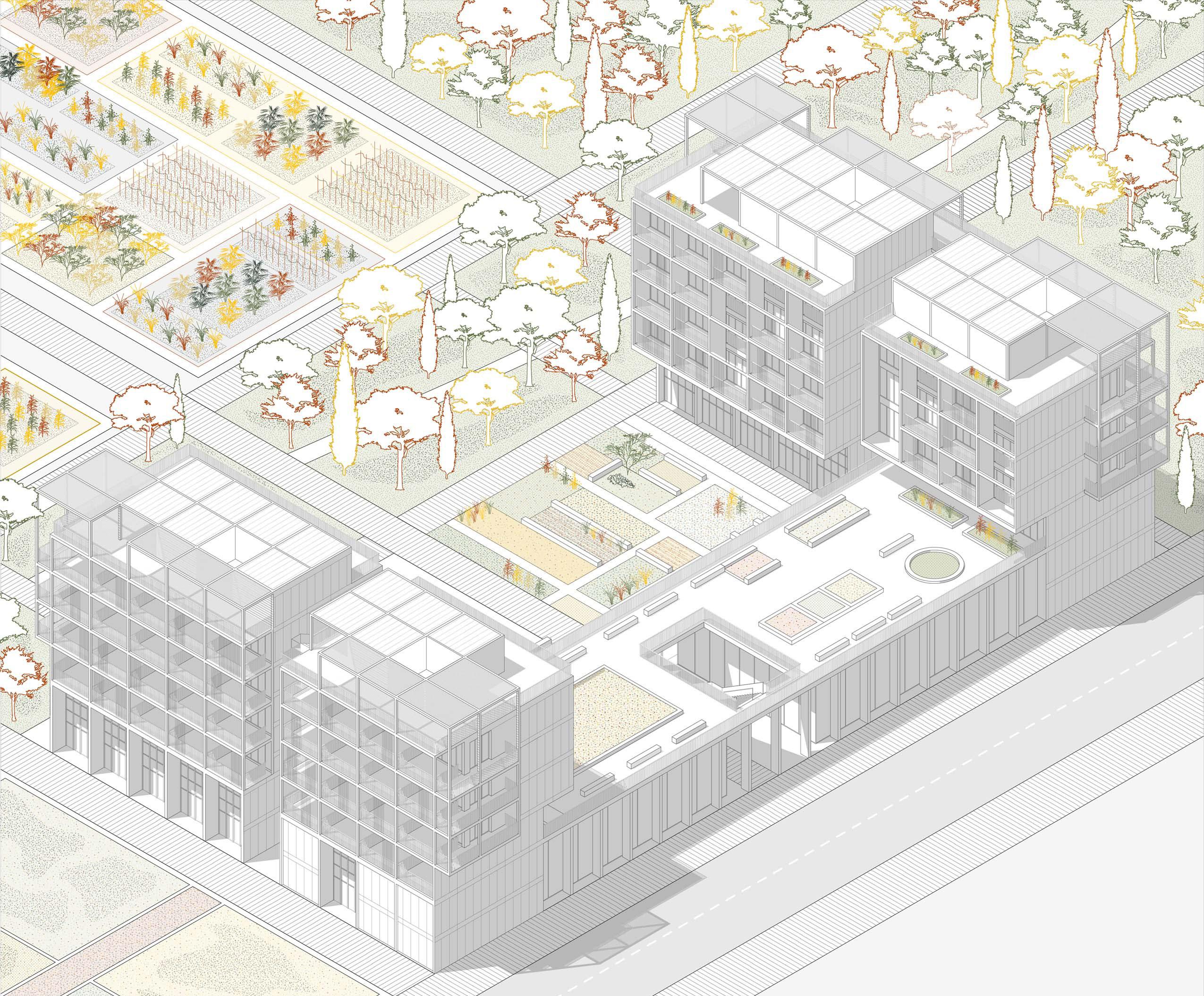 The area, located in the south-east of Milan, is the target of the C40 Reiventing Cities competition. The goal is to redevelop the former slaughterhouse by pursuing fundamental prerequisites: sustainability, resilience and adaptability. After a decontamination of the most polluted areas, through the use of plantations and urban gardens, a public building was conceived and designed to adapt to the presences. This redesigns the southern front of the site, generating permeability and hardness, through the curtain wall and perforations. The second phase focused on the realisation of a residential building for workers and families. The main characteristic is the flexibility that has allowed the design of spaces that can vary over time according to the needs of the users. The construction system is based on dry and mixed systems using steel and timber