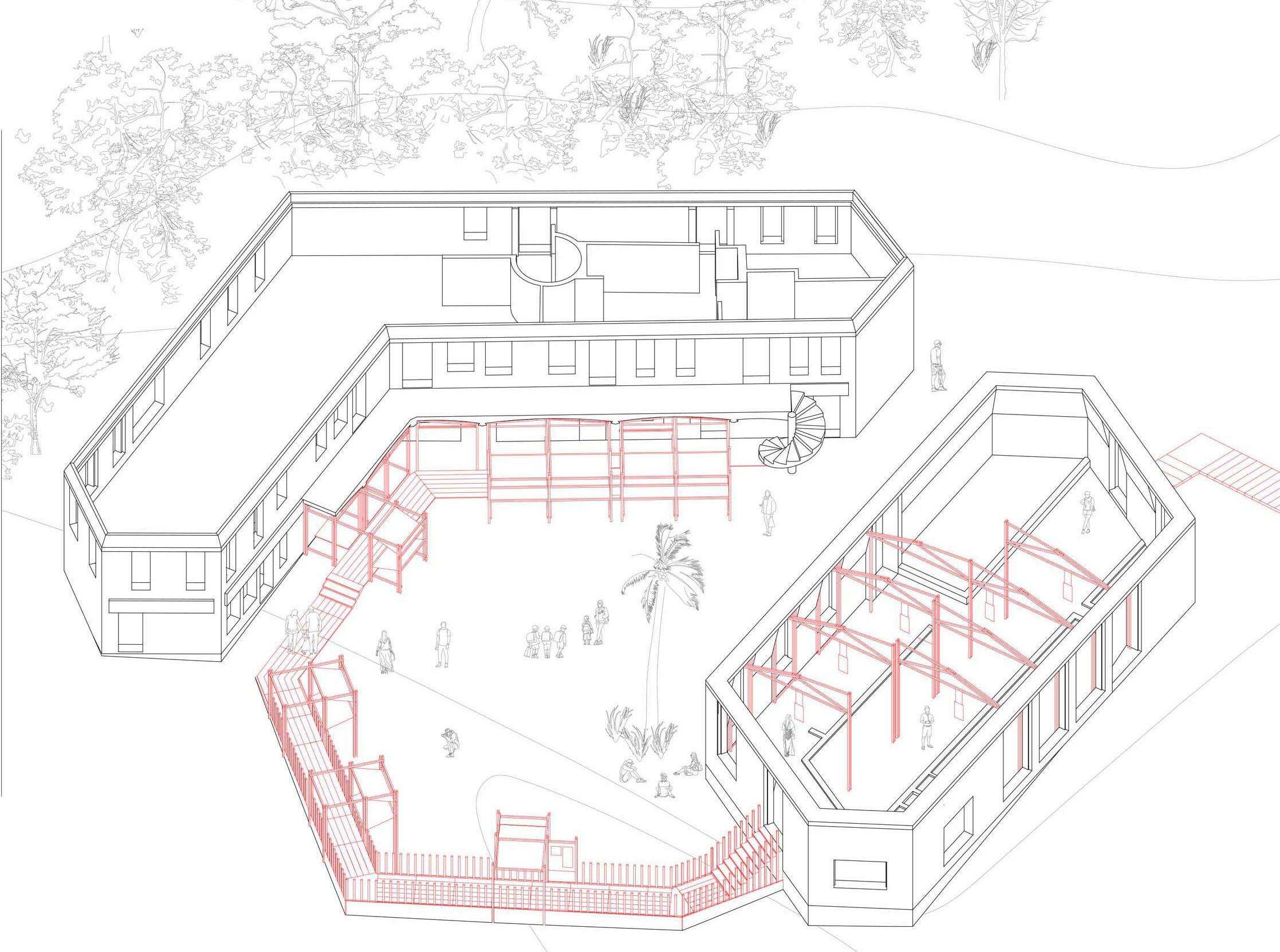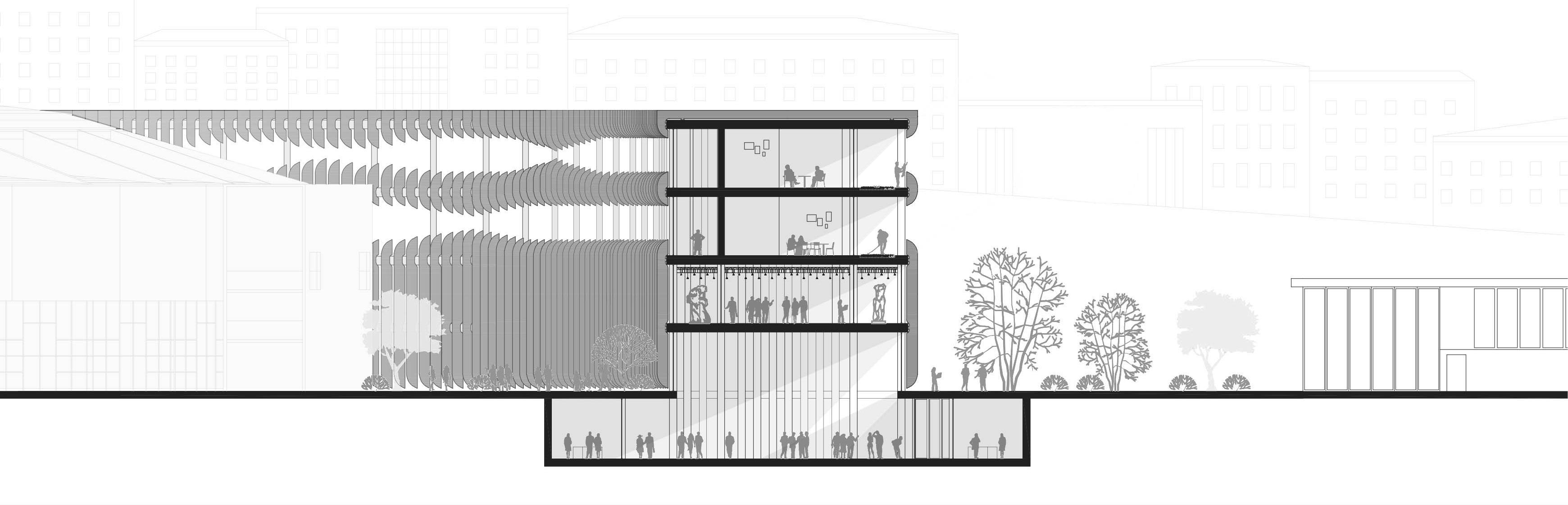 3D modeling of the proposals for the completion of the School of Dramatic Arts designed by Arch. Roberto Gottardi / from 1961 to 2022