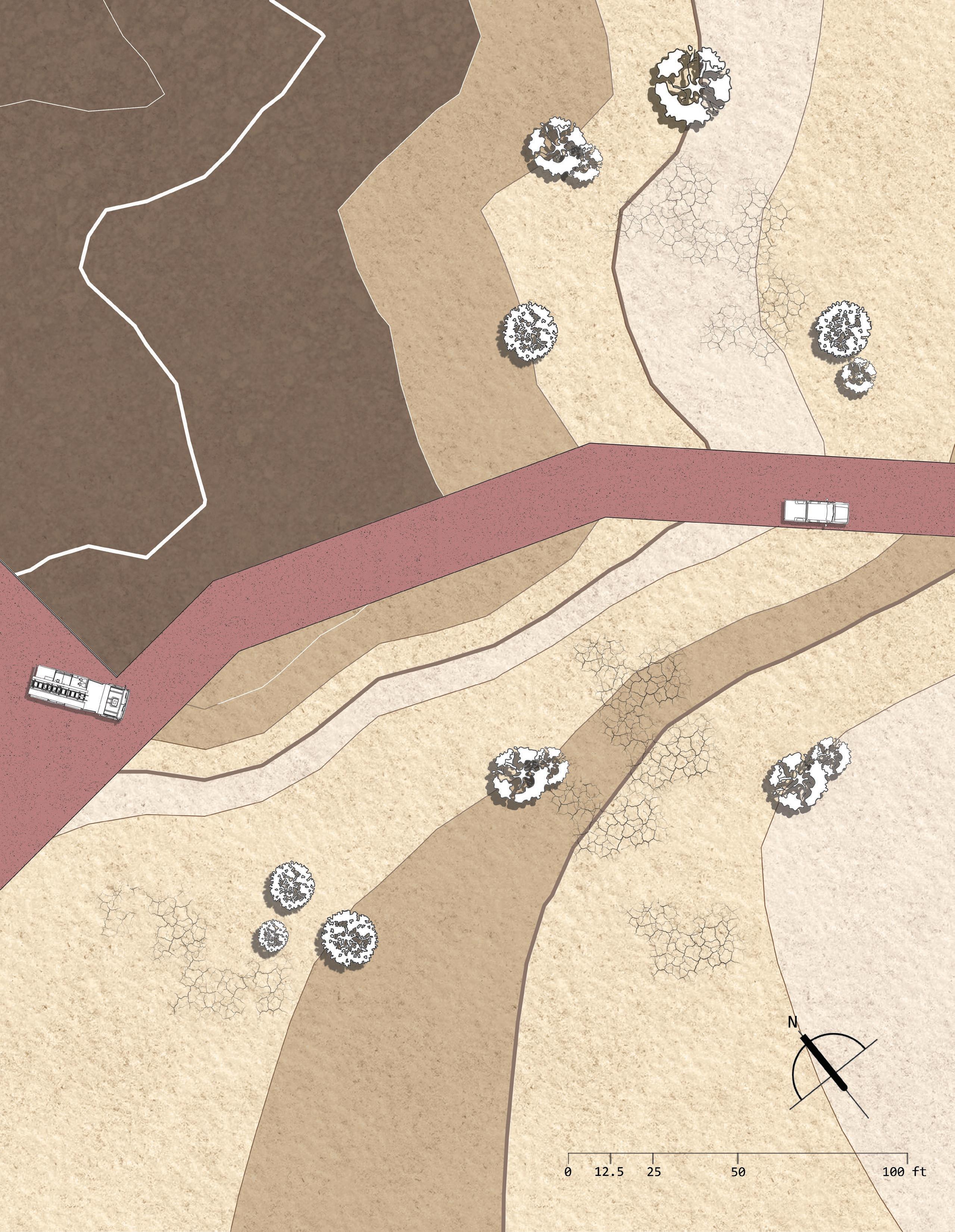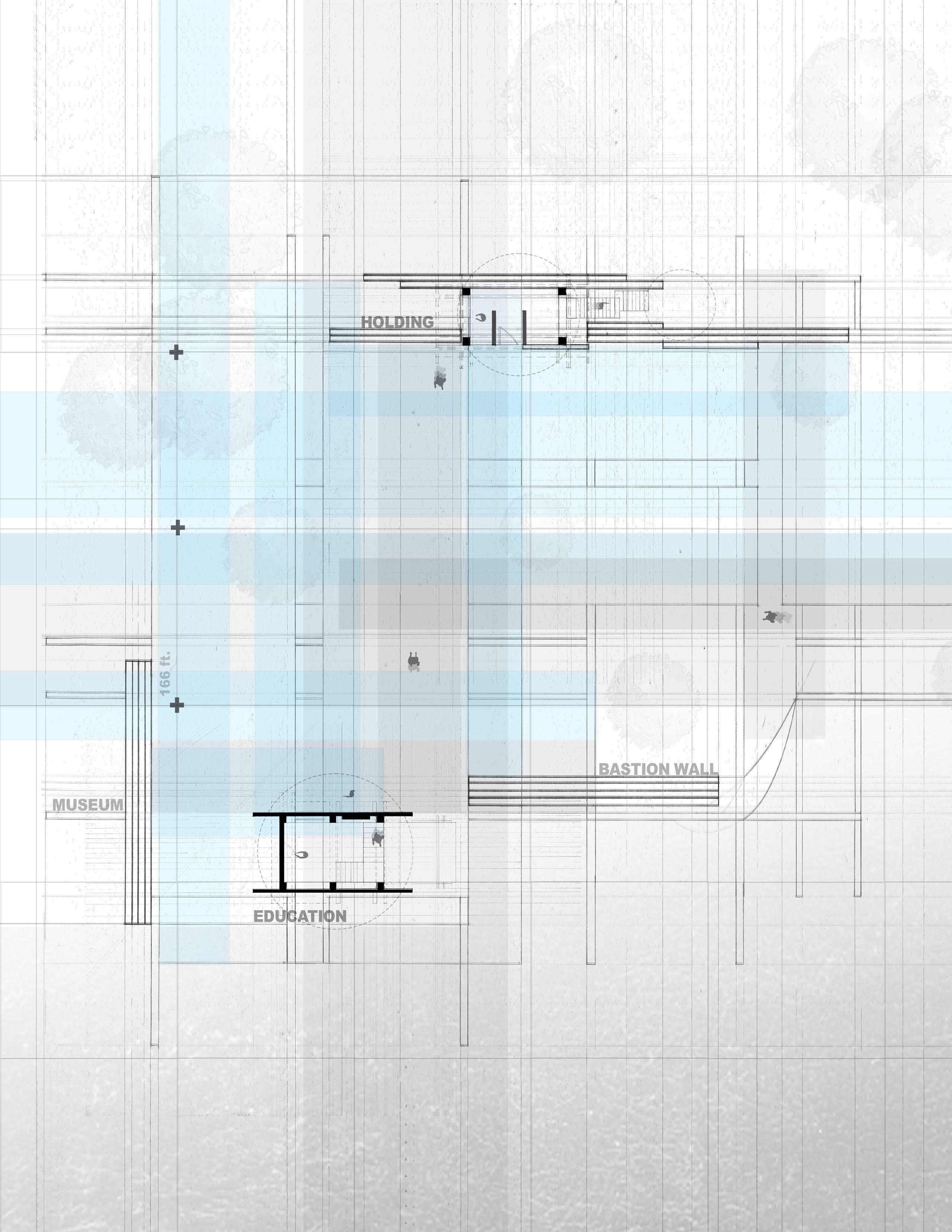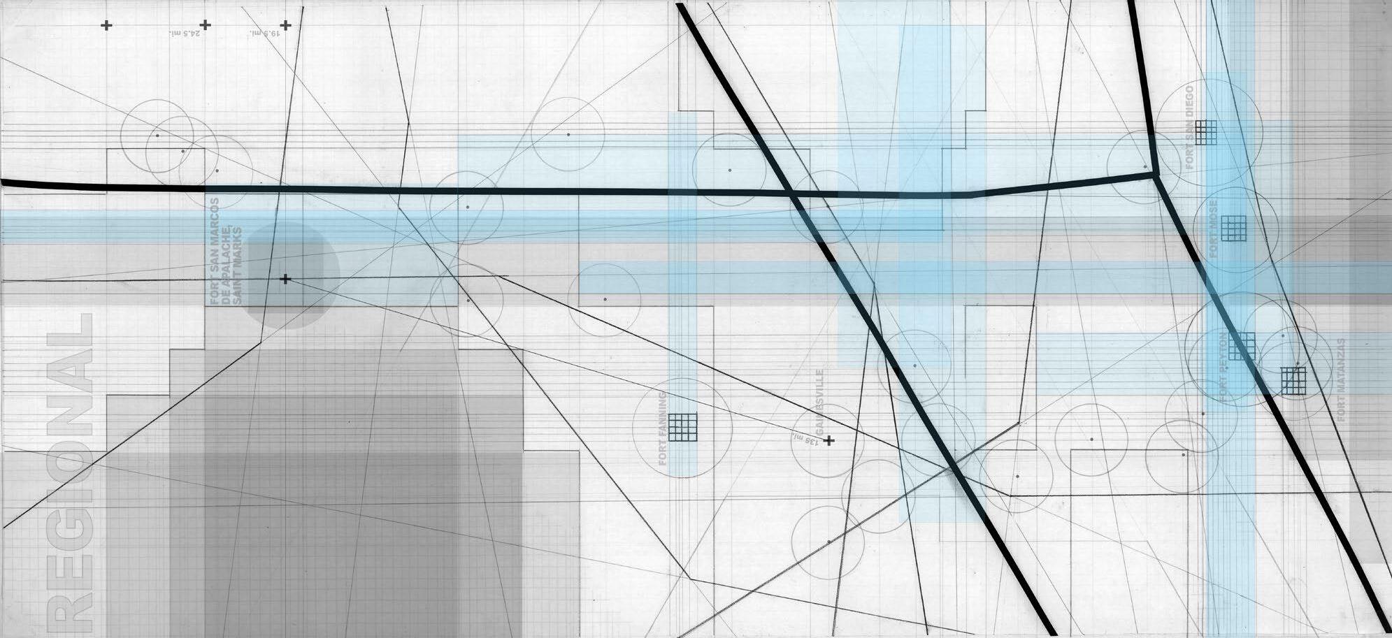 Through an examination of regional, local, and site mappings of Fort San Marcos de Apalache, this project identifies critical hydrological, urban, and ecological boundaries that have shaped the fort’s historical and contemporary presence. These layered readings informed the development of a site axonometric, establishing a framework for strategic future interventions and a deeper understanding of the site’s topography. The proposal unfolds through the restoration of the fort as a catalyst for sustainable tourism, reactivating these often-overlooked colonial ruins while preserving their historical and cultural significance. By blending careful preservation with immersive public engagement, the project reintroduces human presence as a means of continuity, allowing the fort to evolve as a living landscape shaped by both memory and use.