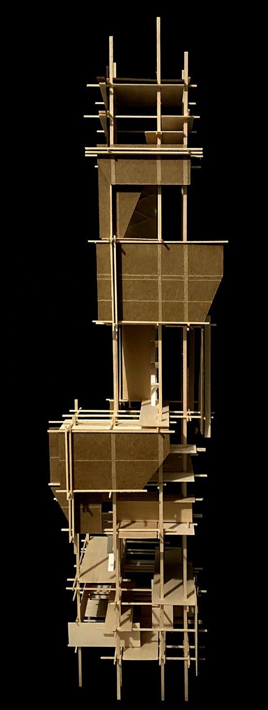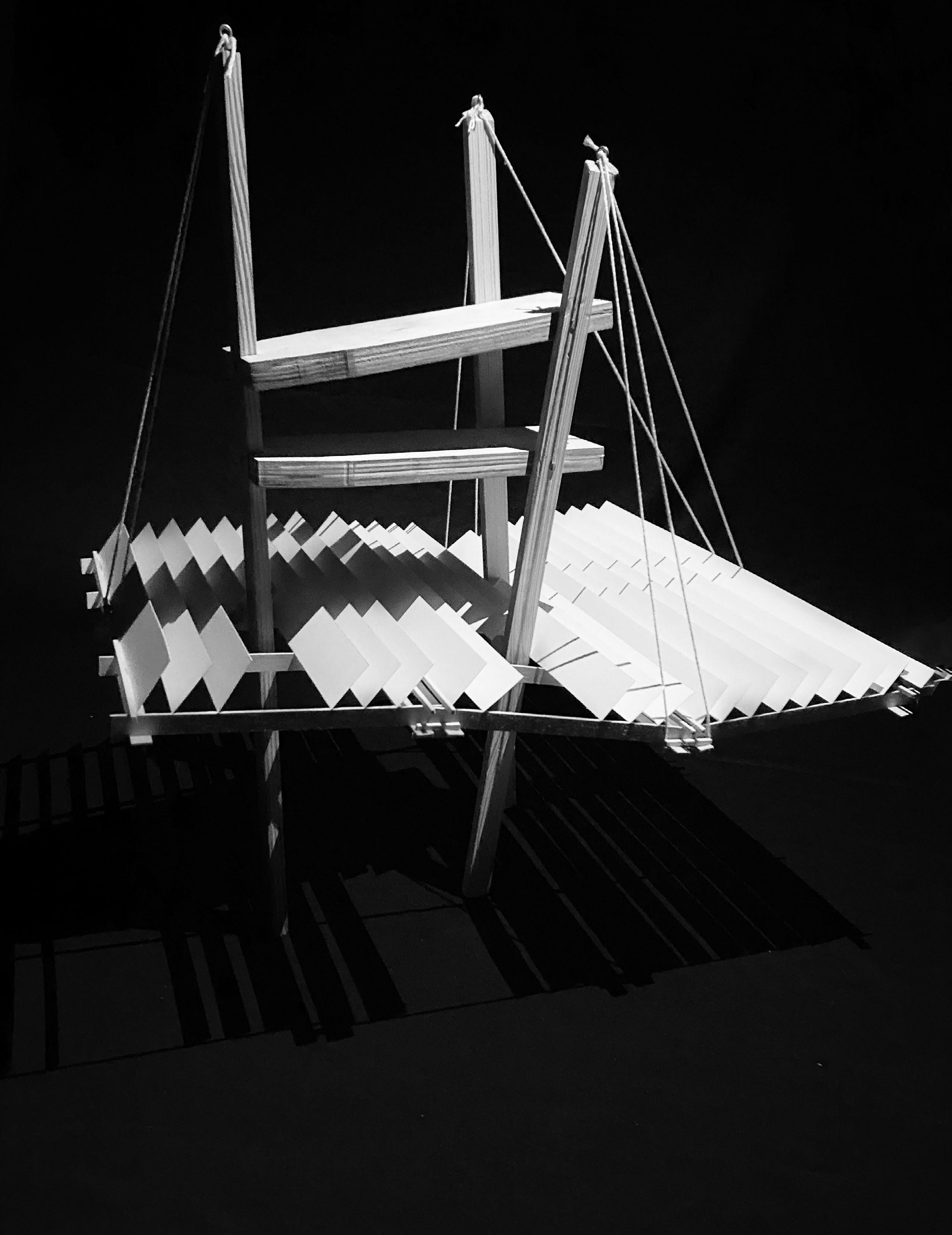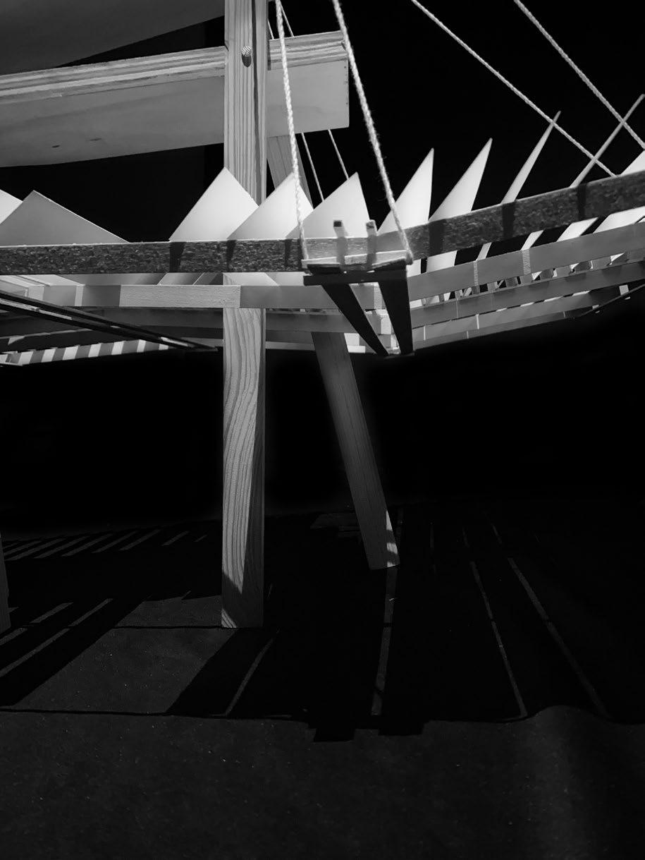 The essence of the light box project is centered on the intricacies of crafting a mechanical lighting scheme and shadow projection. Through the marriage of a bristolgrounded model and a wooden intervention, shadows were manipulated to be casted upon the floor, displaying a dynamic and hierarchical profile that induces feelings of stillness and stability.