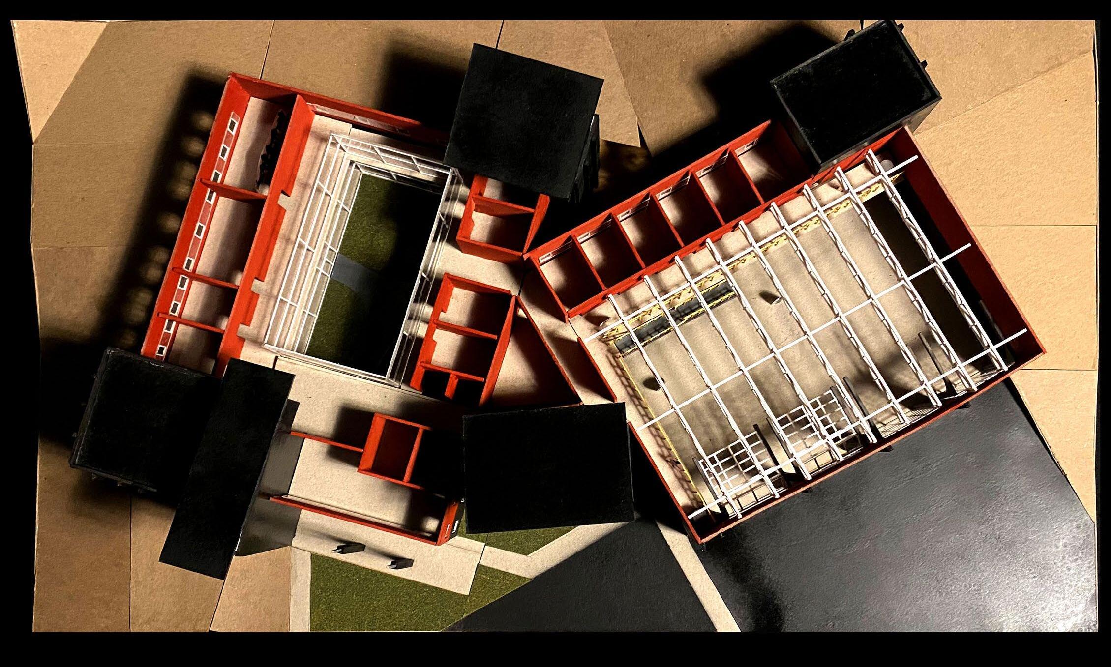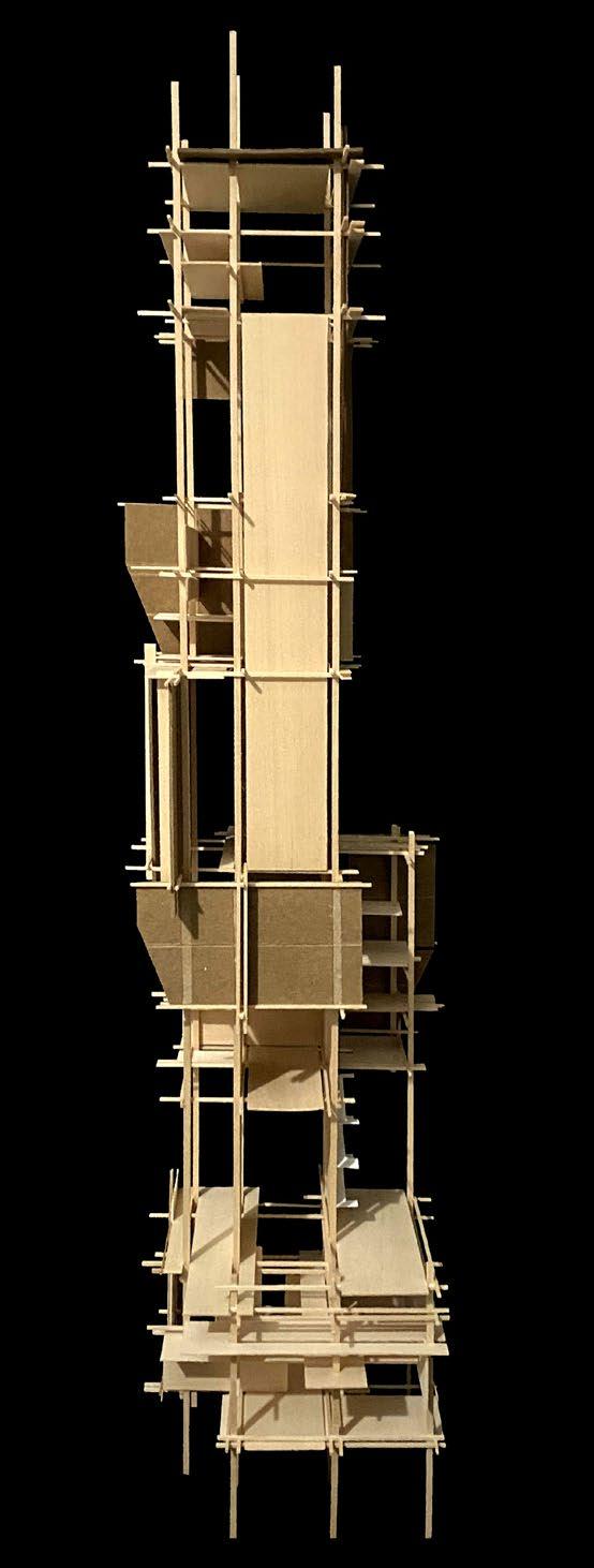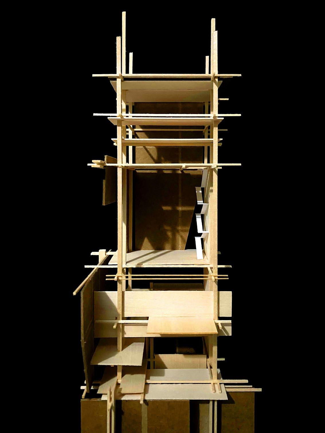 The essence of the light box project is centered on the intricacies of crafting a mechanical lighting scheme and shadow projection. Through the marriage of a bristolgrounded model and a wooden intervention, shadows were manipulated to be casted upon the floor, displaying a dynamic and hierarchical profile that induces feelings of stillness and stability.
