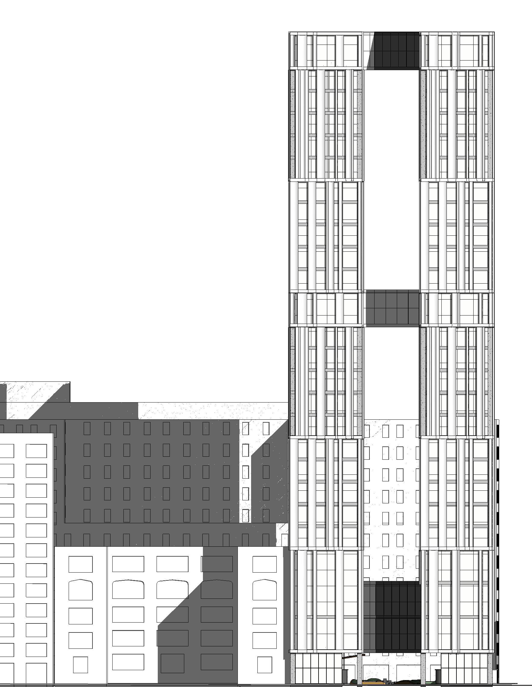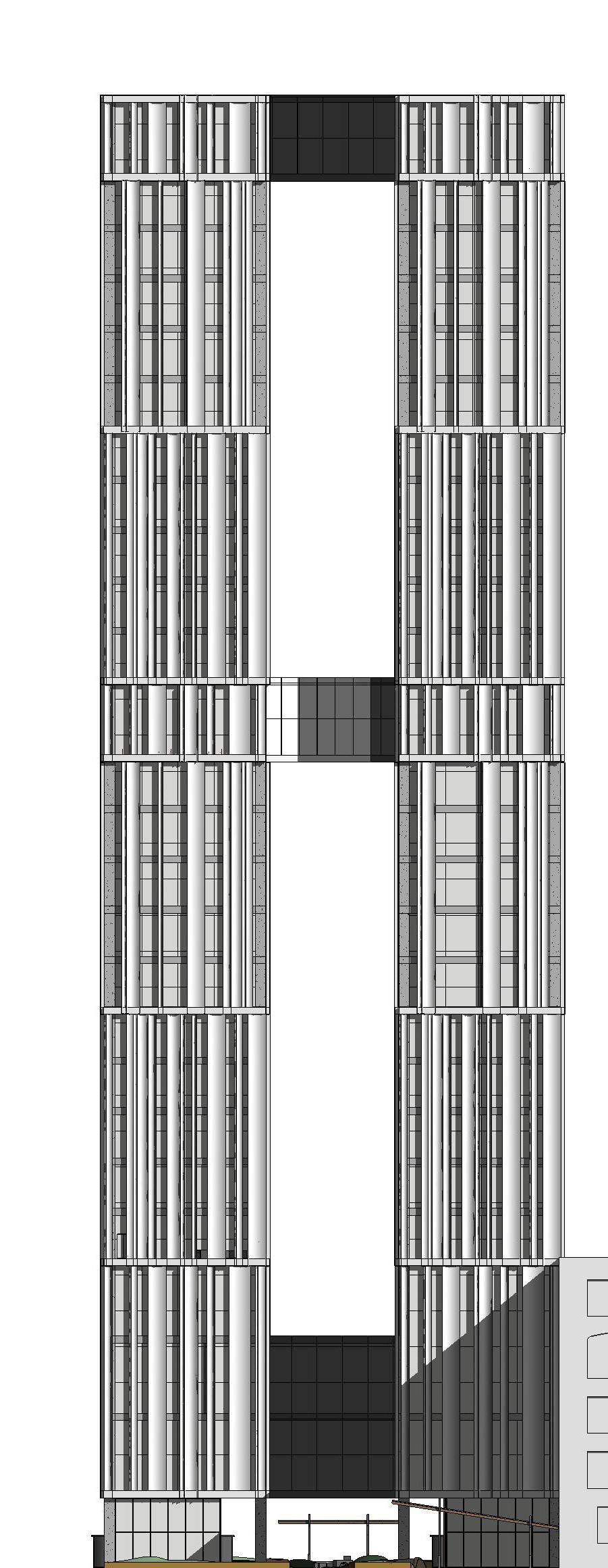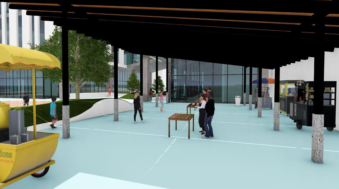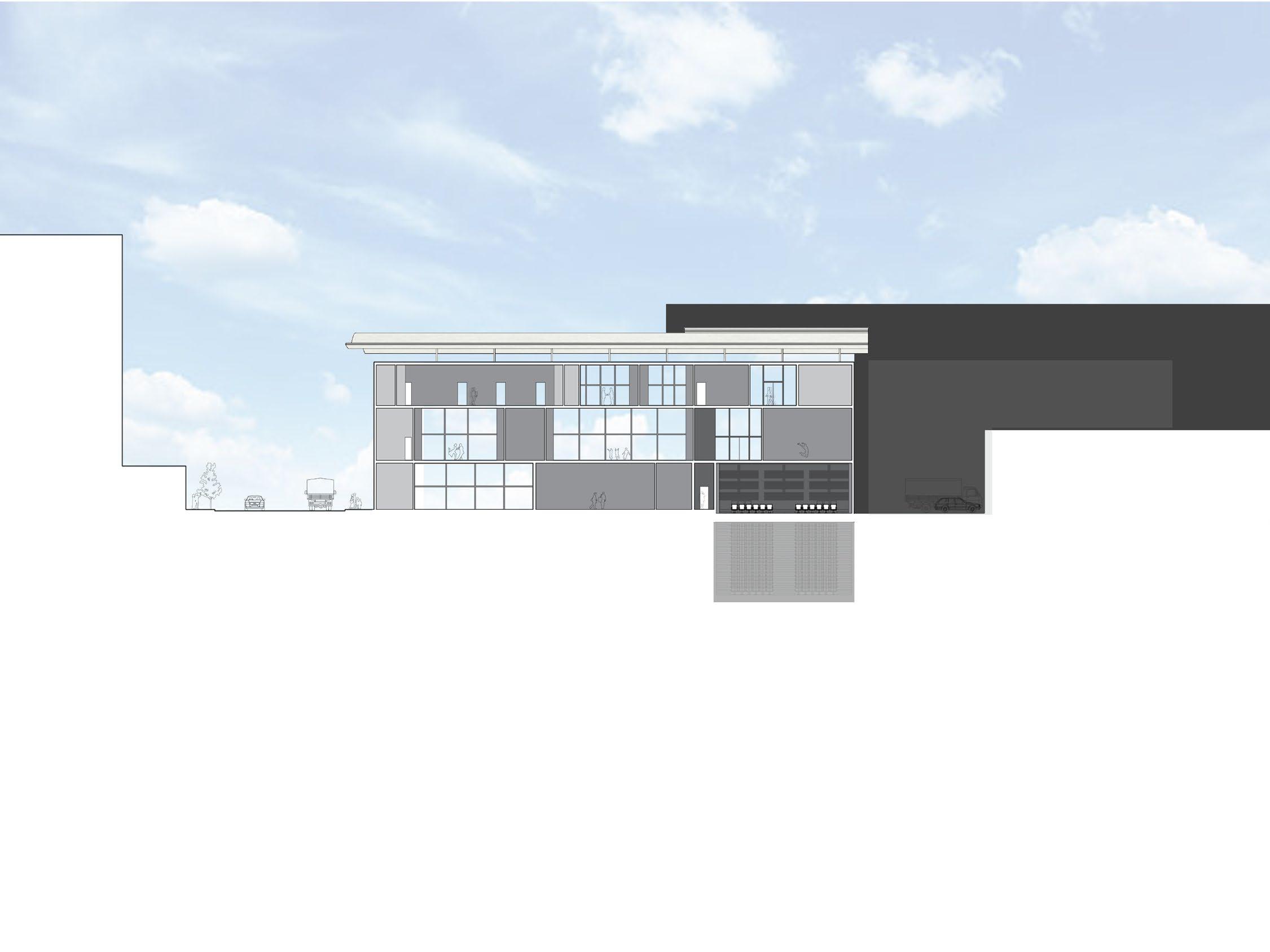 Visually, the building’s form and façade evoke the presence of a theatrical stage, visible from surrounding sidewalks, neighboring structures, and nearby parkland. Its dynamic, flowing roofline captures the energy and rhythm of the performing arts, embodying the spirit of the activities