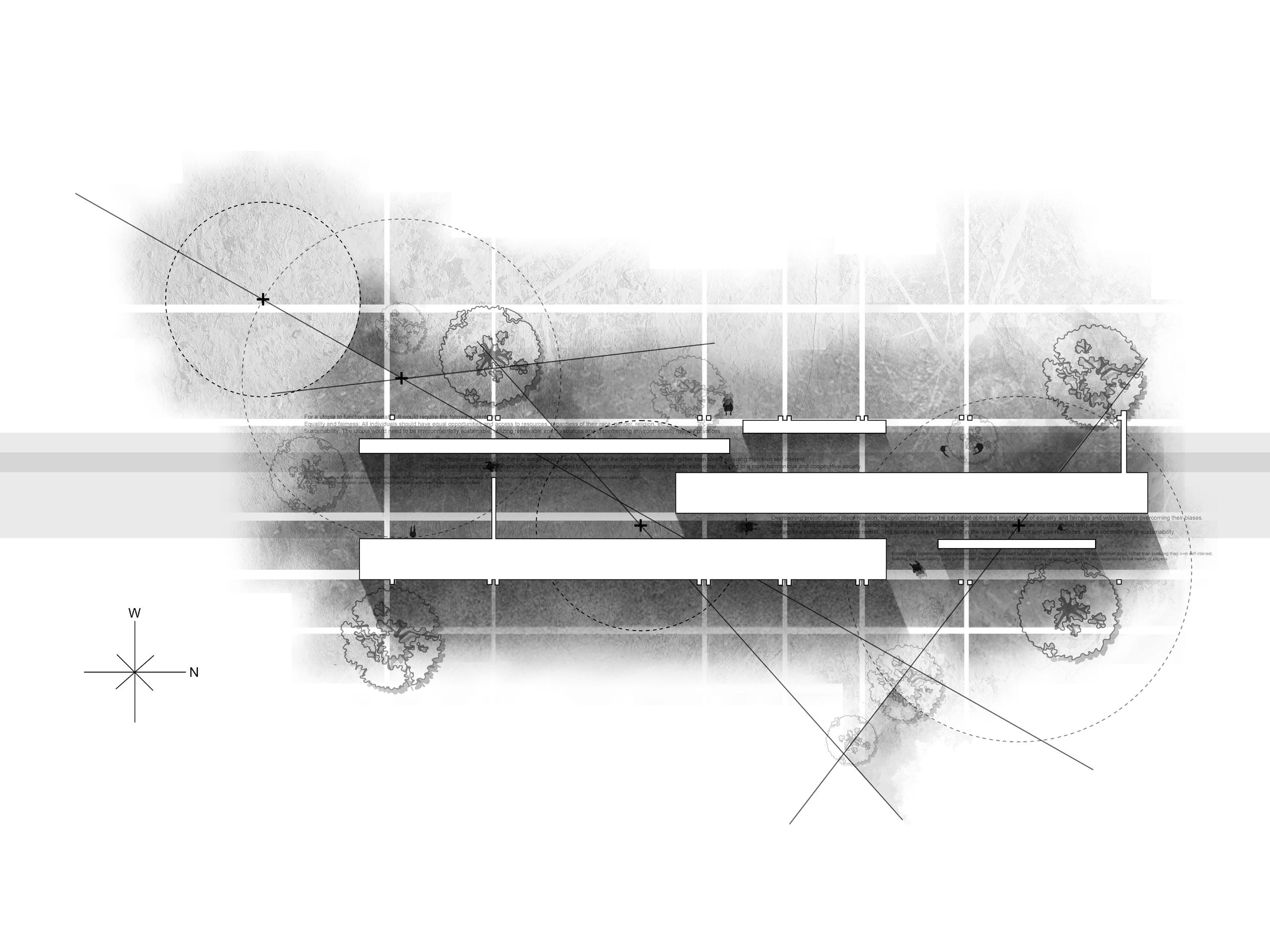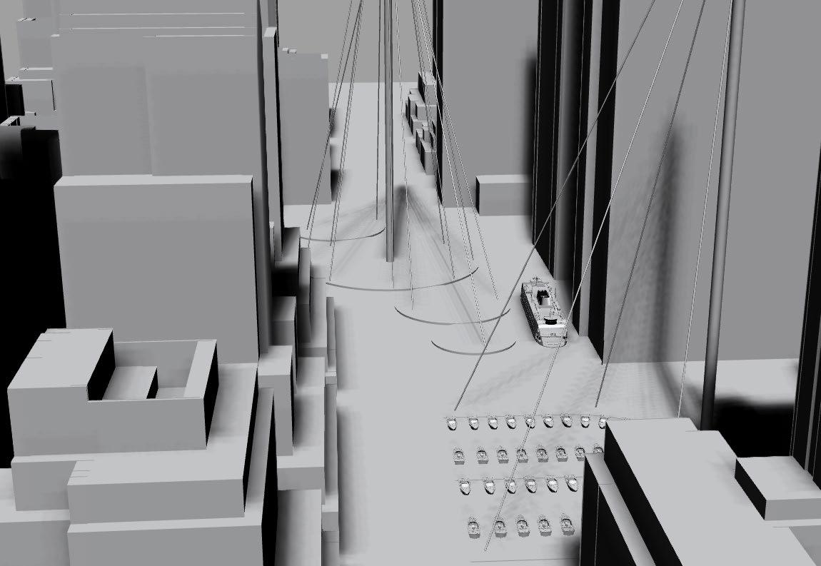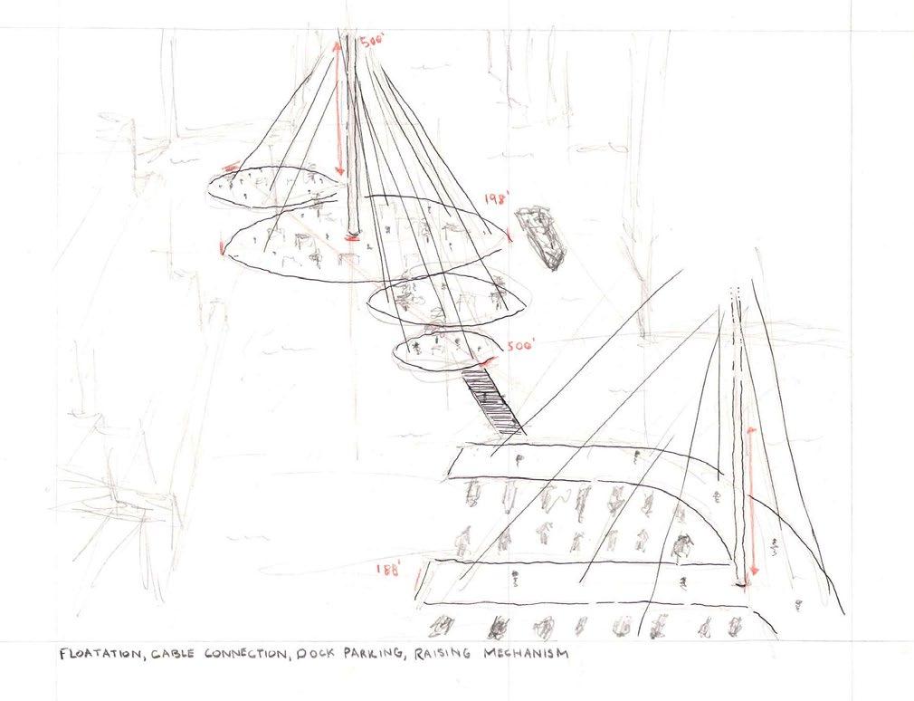 Set in the year 3000 within a speculative future where sea levels have risen by 100 feet, submerging Manhattan’s streets and low-rise buildings, this project proposes an intervention situated along our core sample of Park Avenue in Midtown, featuring notable buildings such as: the Seagram Building, Lever House, and 425 Park Avenue. Designed as an exploration of urban resilience and adaptability, the proposal introduces large, modular floating structures anchored by cable-connected central support columns. The theme of ideal comes into play as the project exists only in the concept; desirable or perfect but abstract.
