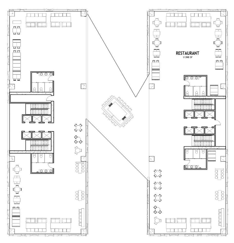 The theme of steadfastness is first explored through the Malachite Stronghold, where ideas of determination, resilience, and duty shape the design of a wildland fire station. These values are then subtly translated into a secondary study that tests how the same principles of public service and unwavering commitment can inhabit a more compressed and informal context: a strip mall. The Newburny Guild reinterprets the language and ethos of the Malachite Stronghold as a union hall for firefighters, both active and retired, serving as a space for gathering, knowledge-sharing, rest, and communal care. The interior is organized around a central assembly space, anchored by a raised dais for leadership, discussion, and ceremony, and supported by a job board that reinforces the guild’s role as a site of labor, opportunity, and continuity.