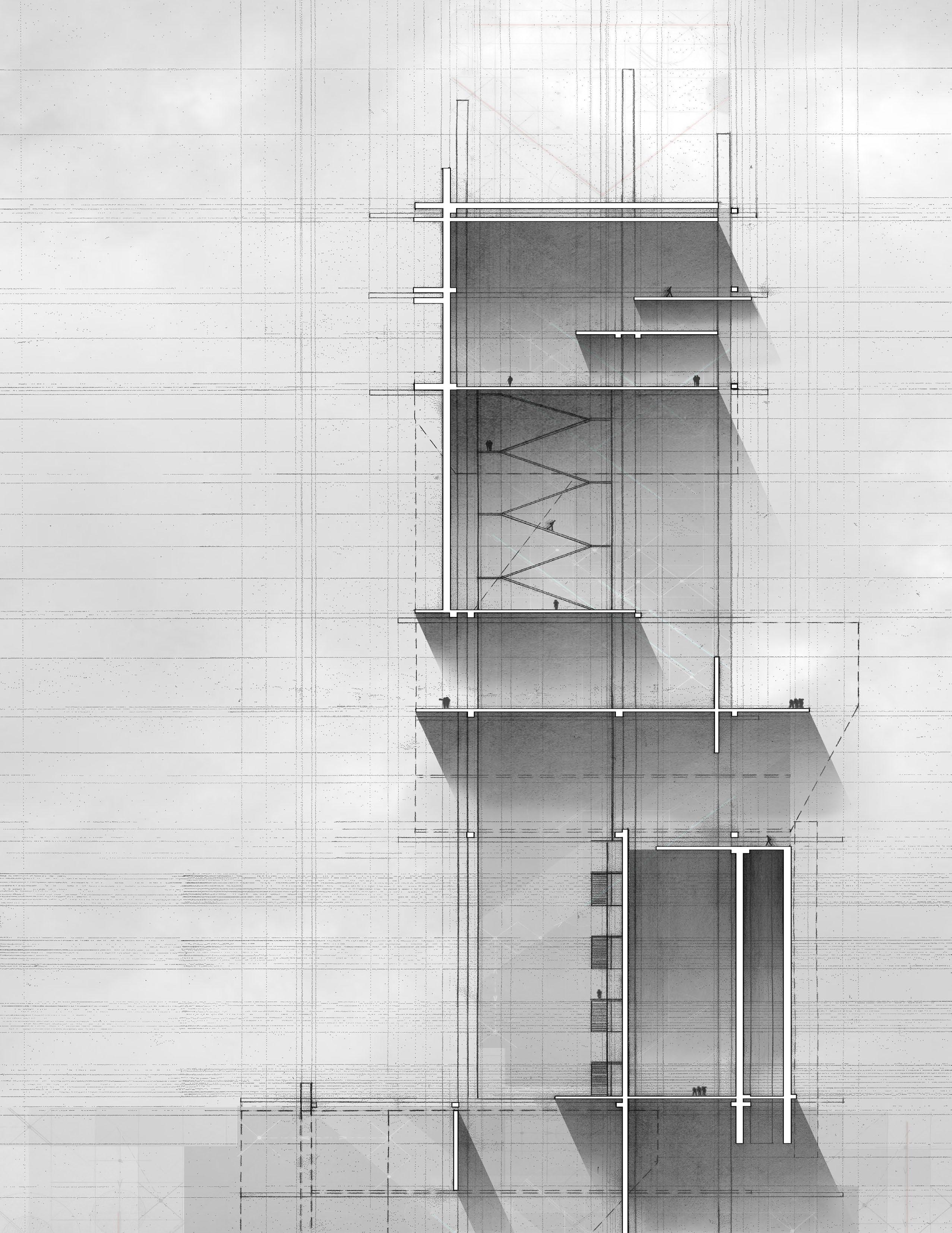 An irregular plan, tower-like elements, and a protected interior atrium organize a program that balances quiet preparedness with rapid response. Operating as both shield and sanctuary, the station occupies a contested frontier between preservation and destruction, serving as a civic outpost of memory, care, and collective readiness.