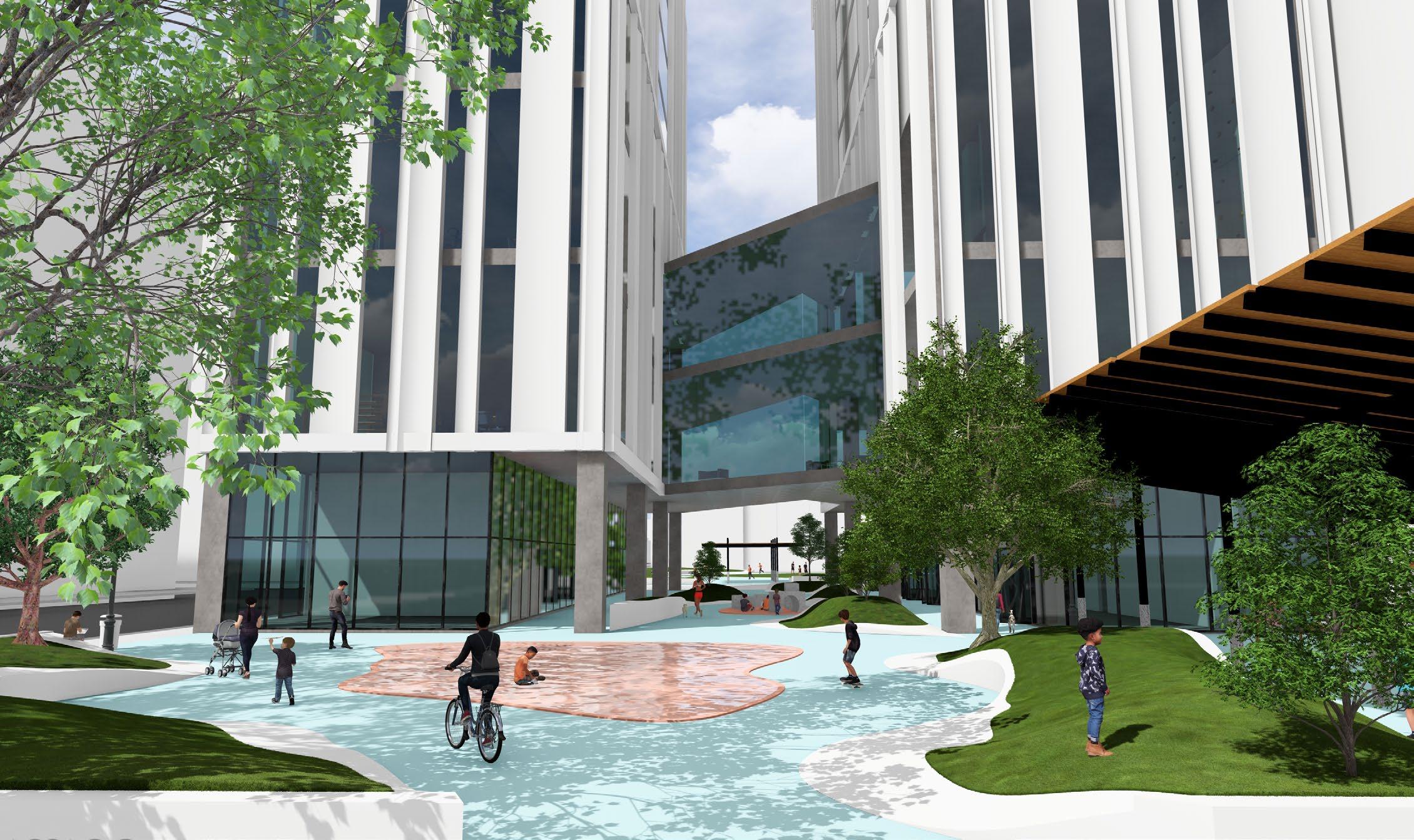 The building includes a public library, encouraging education, and a rooftop restaurant that provides a unique dining experience with panoramic views of the city. Residents benefit from a range of amenities that support a healthy and balanced lifestyle, including a fully equipped gym, a residential lounge, a rock climbing wall, and communal meeting rooms. By combining affordable living with access to recreational, educational, and social spaces, Hudson Vista sets a new standard for inclusive, community-focused urban development.