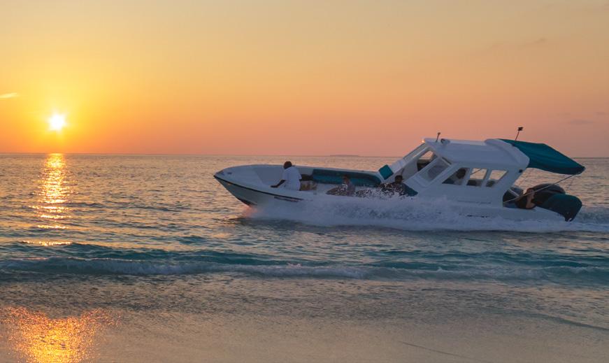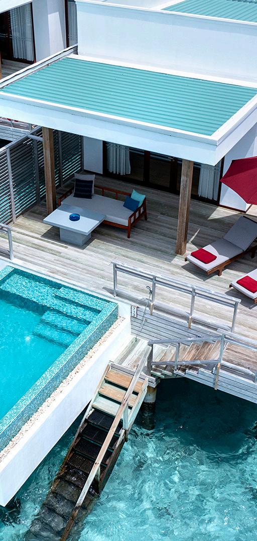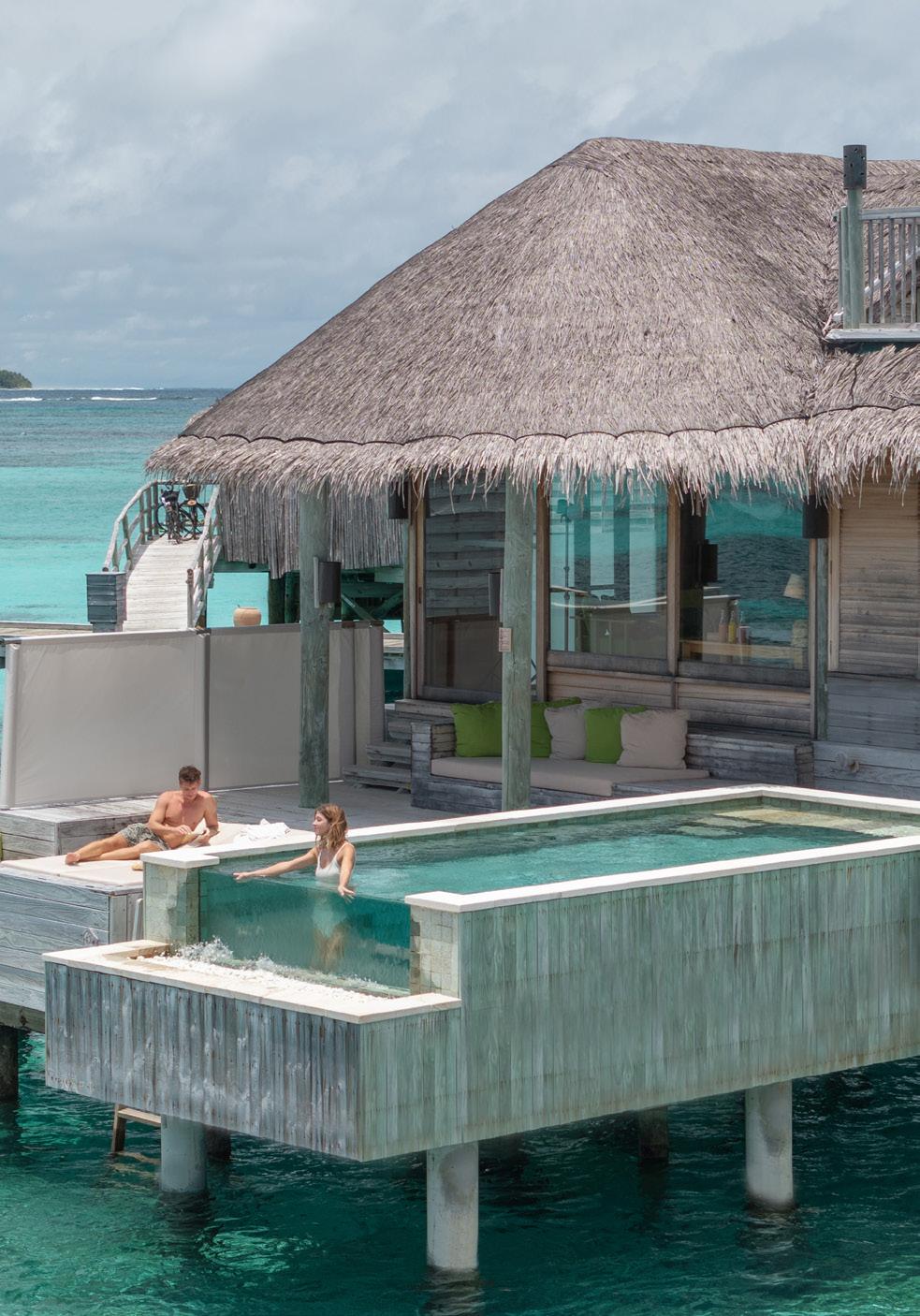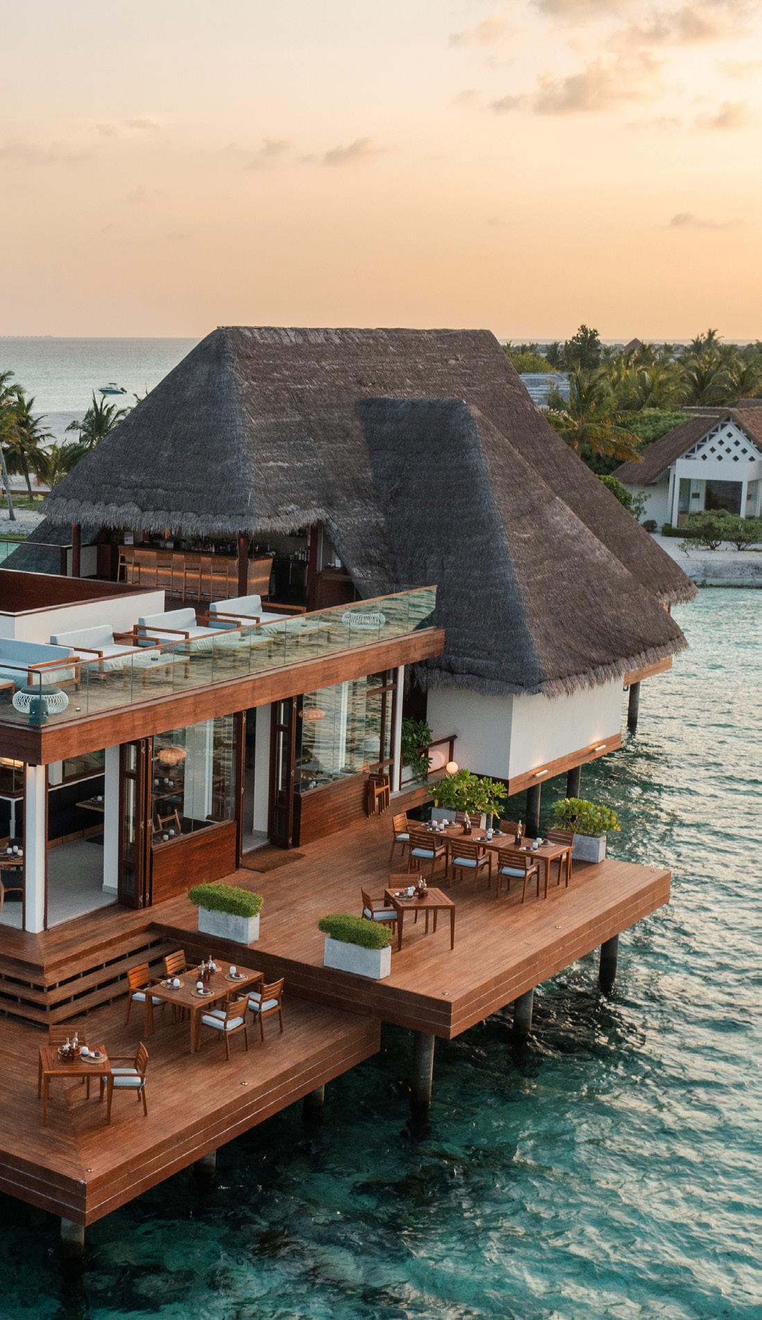 SEA is a remarkable restaurant that offers fine dining and wining beneath the ocean’s surface. Submerged in crystal waters surrounded by the vibrant and lively reef, this restaurant delivers that bucket list and jaw-tothe-floor moment. Marine guides and staff are eager to help you identify your underwater neighbours, to truly immerse you in the experience. FIRE serves teppanyaki with flames and flair on the flat-top grill, alongside lagoon views, while SPICE offers overwater Asian cuisine. SKY is perfect for sundowners and stargazing at the Maldives’ first overwater observatory.
