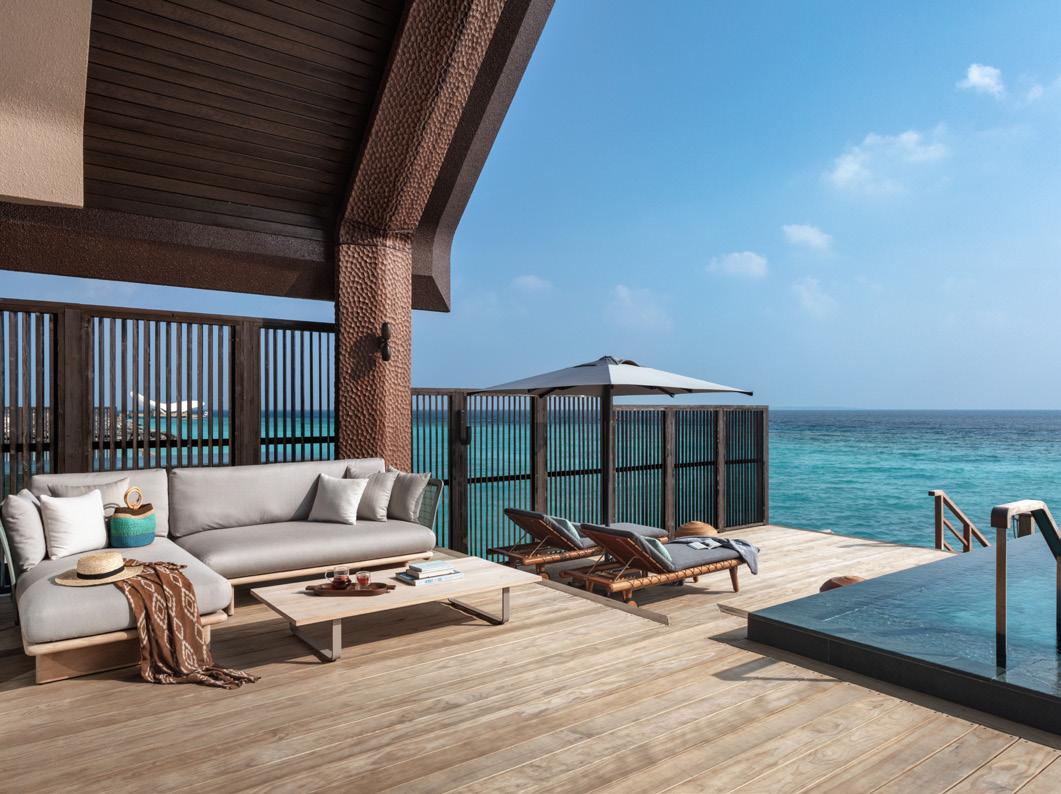 Deluxe Beach Villas feature a lush garden open air bathroom, while Baros Villas add a romantic touch and generous interiors. Eight of these villas include an extended terrace with a private plunge pool and alfresco dining area. Two premium options, set on a secluded beach and cocooned by tropical foliage, are enhanced with an infinity-edge plunge pool, with built in Jacuzzi, and panoramic ocean views. With dedicated loungers beneath a thatched parasol, these retreats feel like private sanctuaries you’ll never want to leave.