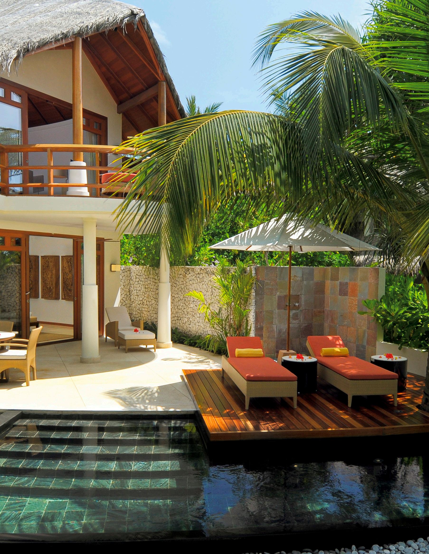 These wood-and-thatch Villas appear to float on Baros’smagical waters. Relax on a spacious outdoor deck, or descend from the private stairs directly into the crystal-clear water of the lagoon. Fifteen villas feature a private pool and a shaded daybed on a sun-drenched veranda, with steps leading directly into the crystalclear lagoon below.