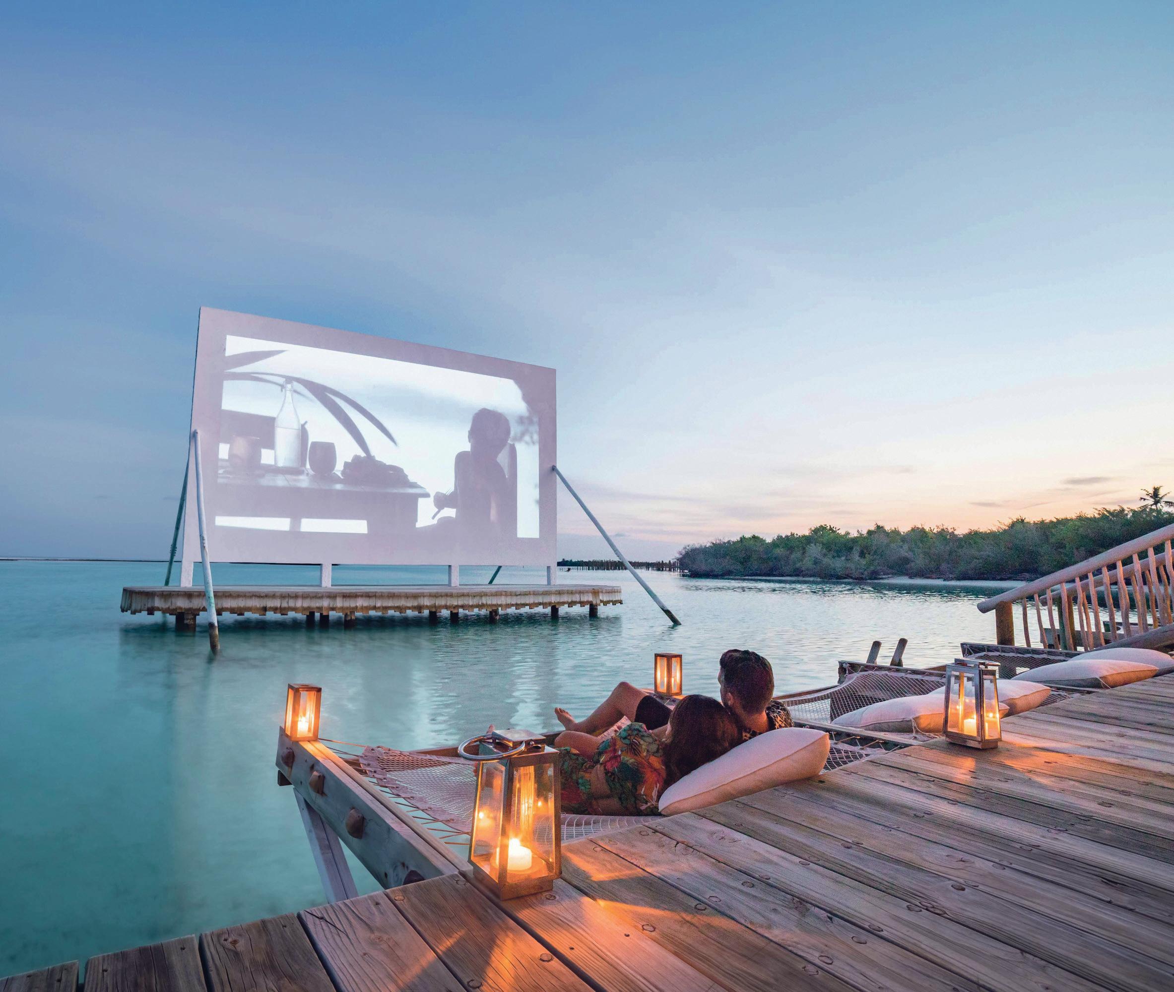 This isn’t just a beach holiday. It’s seaplanes skimming across turquoise atolls, villas shaped like traditional dhoni boats and cinemas set up under the stars. It’s surf shacks and sleepouts, ice cream carts by day and cocktail carts by night, slides from your bedroom straight into the water. One island might offer tree-top dining and world-class wellness: another, cookery classes with local chefs or the chance to learn to dive beside a marine biologist.