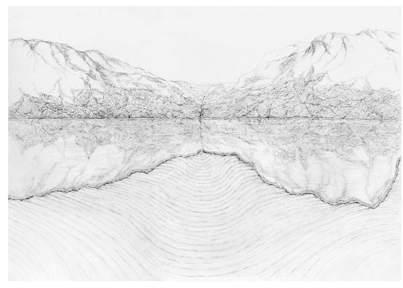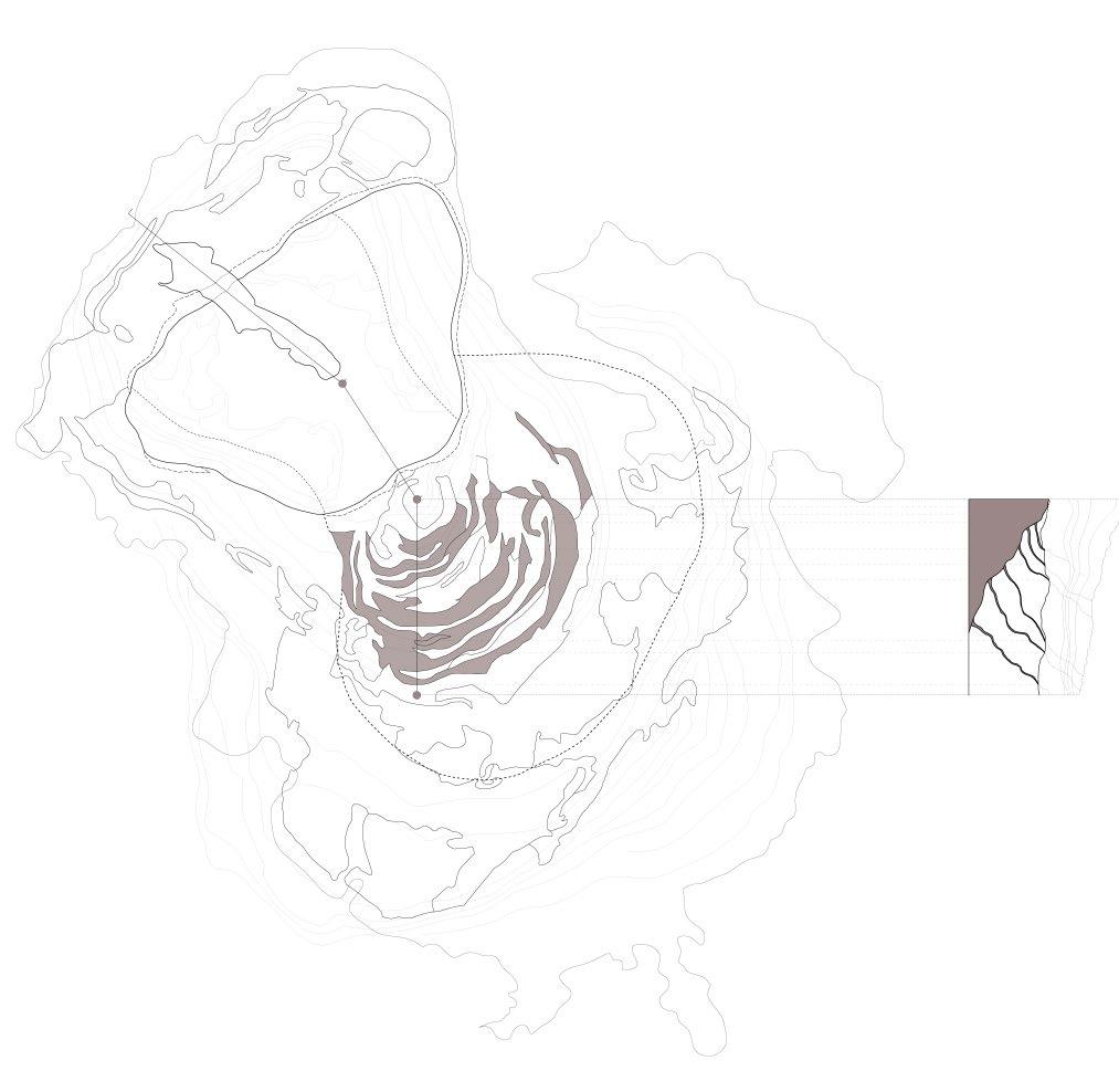By designing an underwater landscape using local rocks and marble, visitors can observe the geological history through the movements of light and ripple. The site, Loch Ba, is located within the Mull Central Complex, a region shaped by three volcanic centers. These centers are like gigantic ripples that form the land with rings of magma.