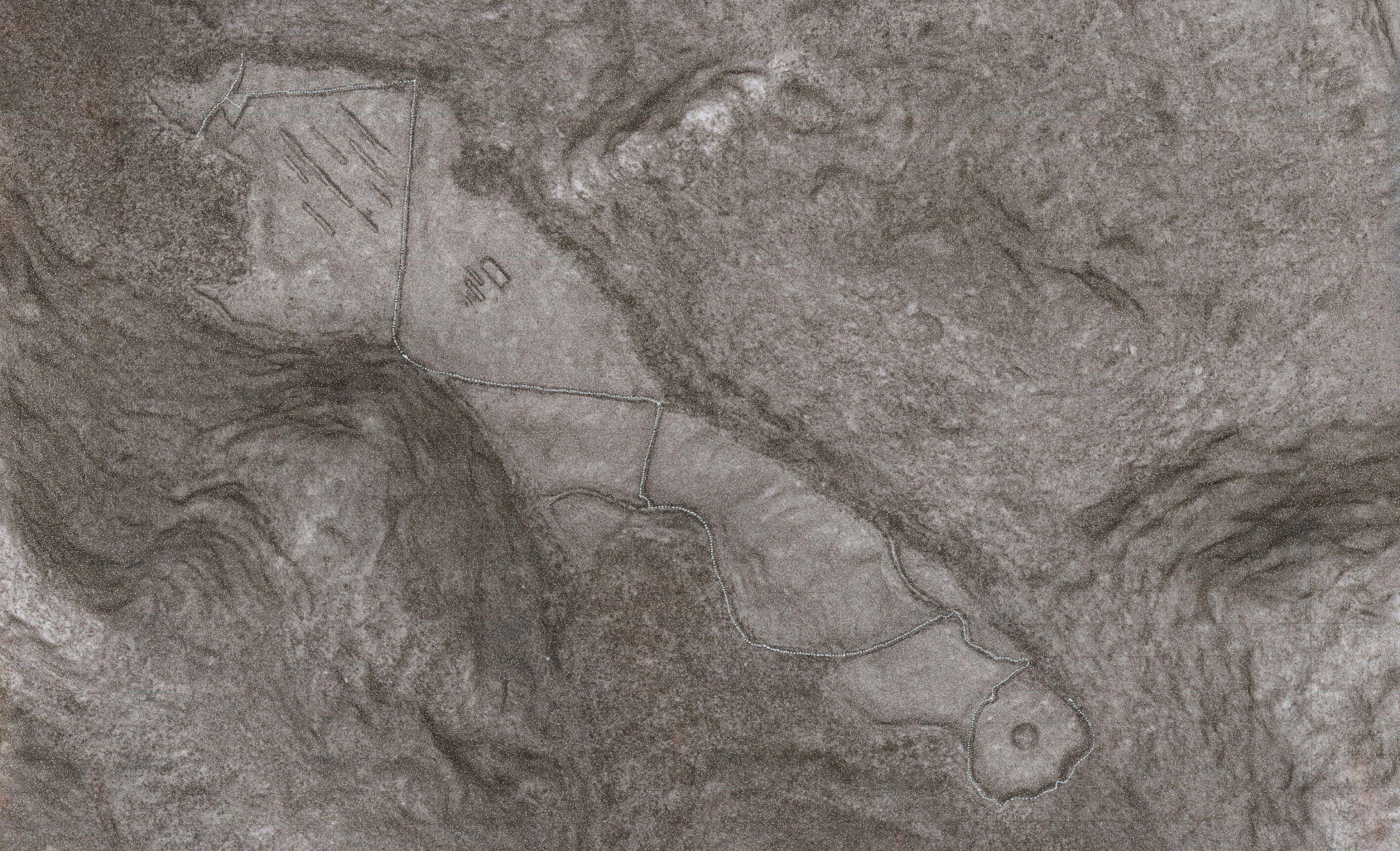 In the middle is Loch Ba without water and the underwater landscape under the water's surface.