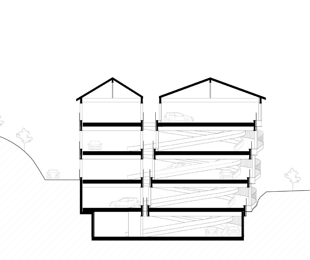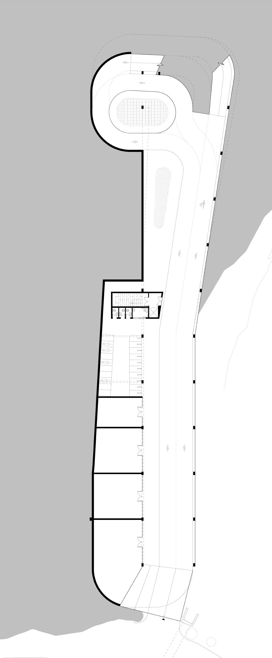 The design is inspired by the dramatic topography of the Bay of Kotor — a landscape of fluid, folding forms and reflective surfaces. The building’s split oval shape responds directly to the constraints of the site and allows maximum spatial efficiency within the irregular site.