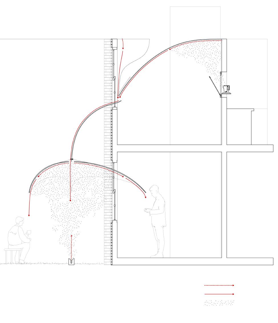 If they are curious about the community, they can take some water from the water fountain at the end of the wall. And put it into the mist room that the residents can see from their window as a sign that the outsiders are sending their signal for conversation and small talk.