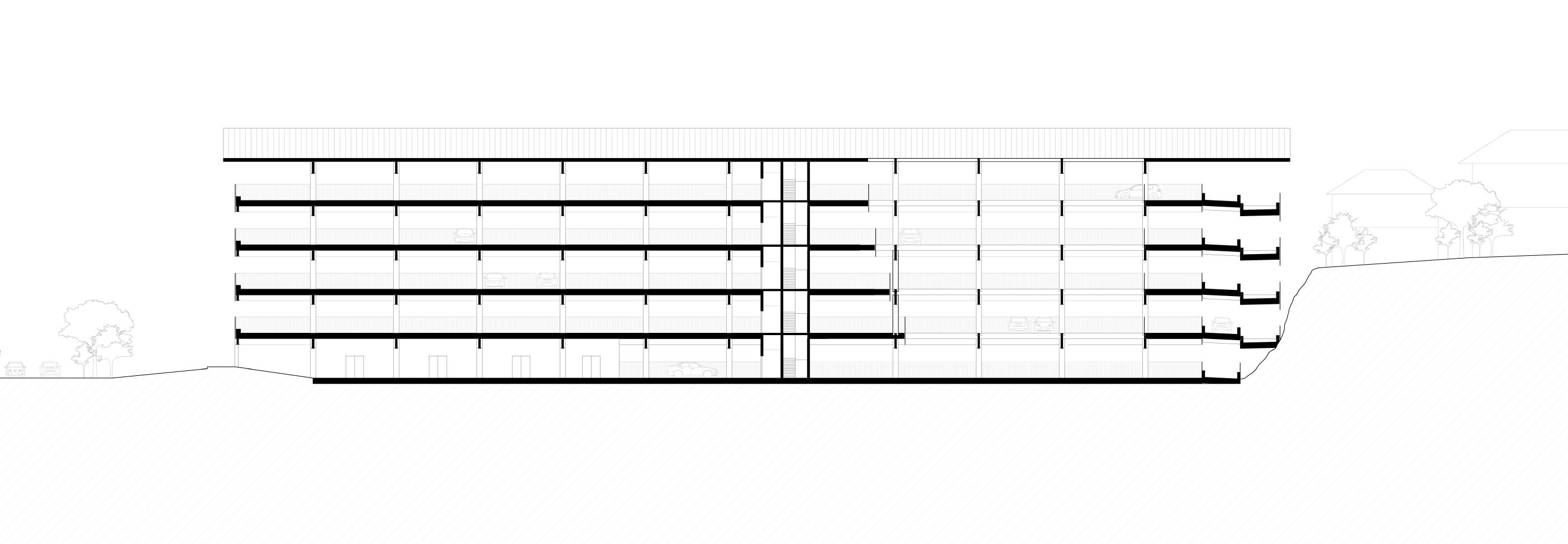 A light well pierces the northern half of the building, flooding the interior with natural light and creating visual connections between levels.