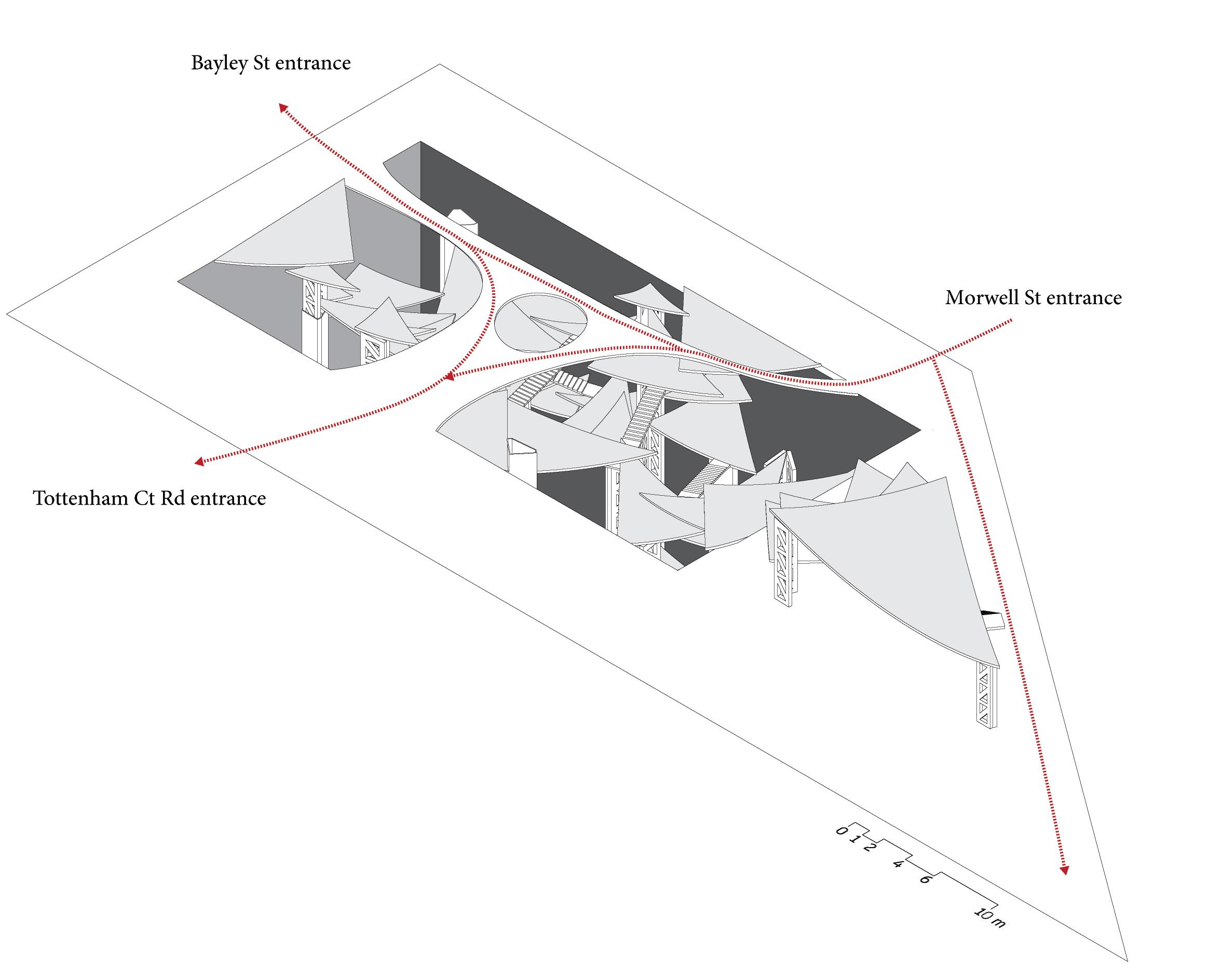 Since the circulation is organiized in a fluid way, people get to choose diifferent ways to navigate in the space depending on the desired speed, as well length of the path.