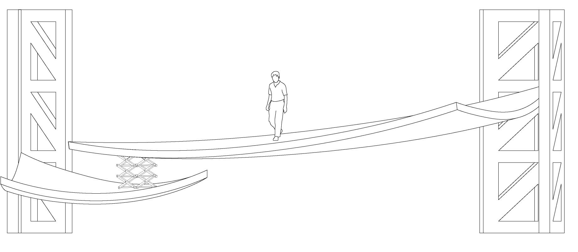 Scissors lifts are used to build connections between each platform. When people are walking on the platform, the scissors lift will gradually go down. Therefore, when they reach the tip of the platform, they can simply step down to the next one.