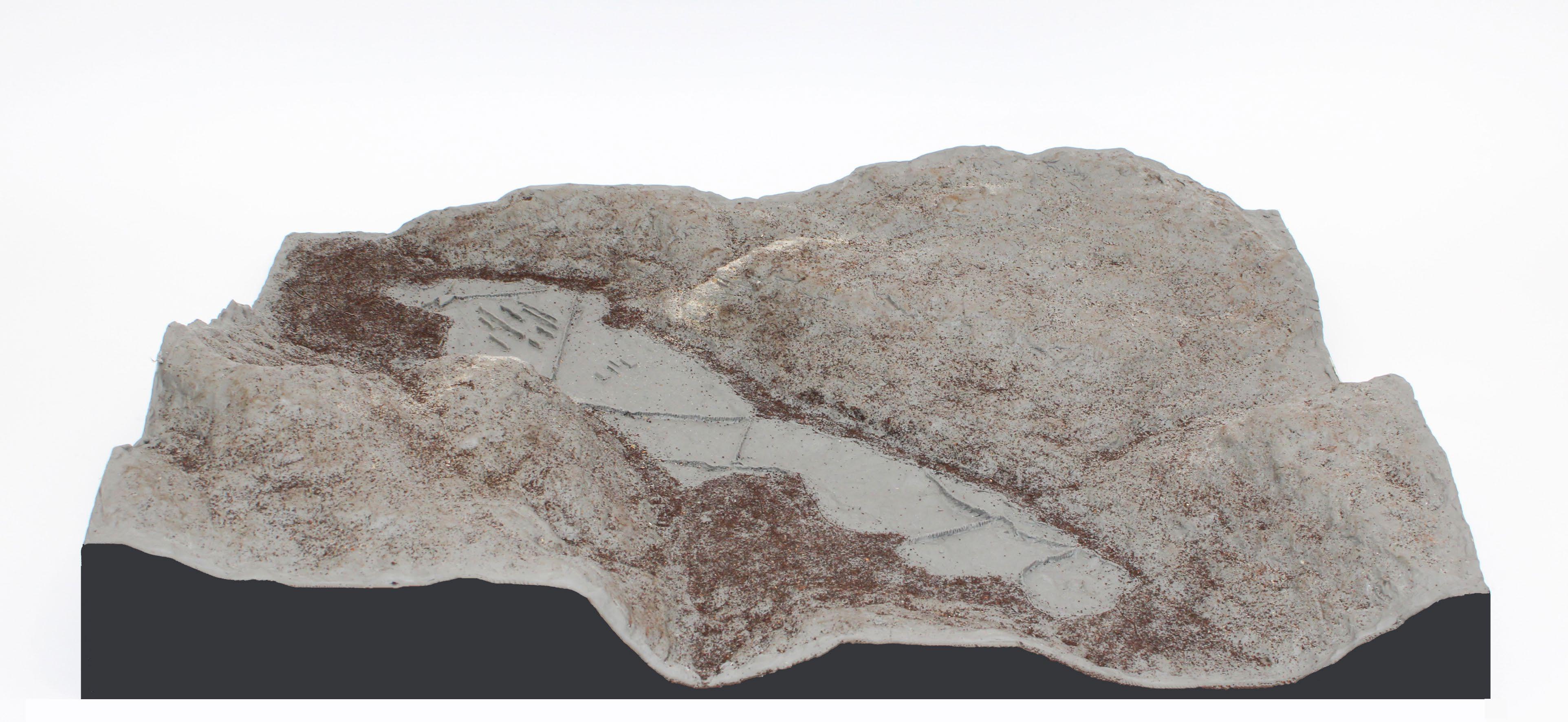 A1 Size model (Oil Clay and Tea Bags) of the site's geological features and the underwater landscape