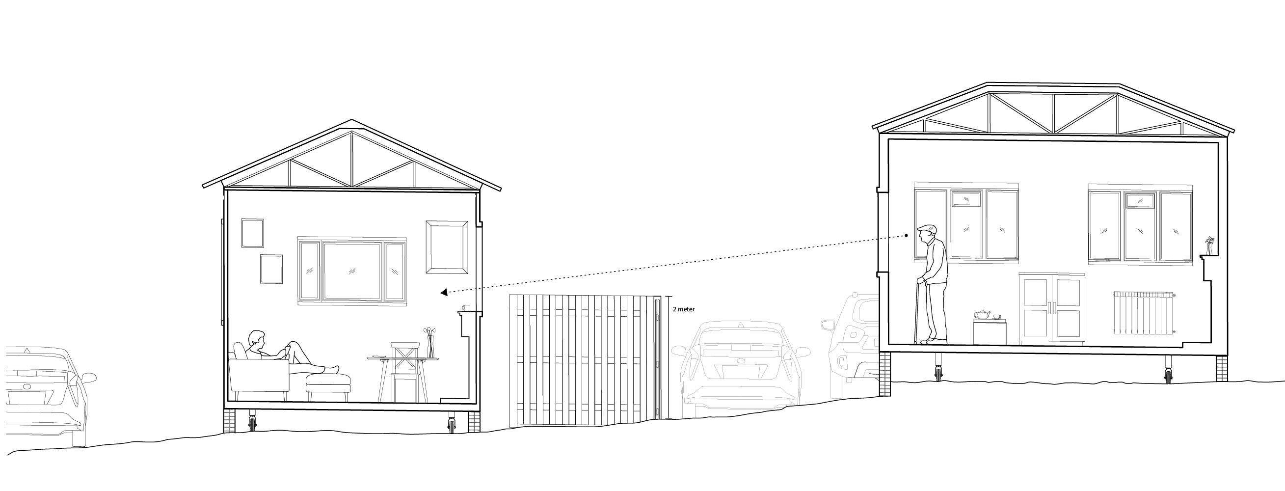 This project is a seesaw between the enclosed retired community and the relatively young generation, between being isolated and being exposed.