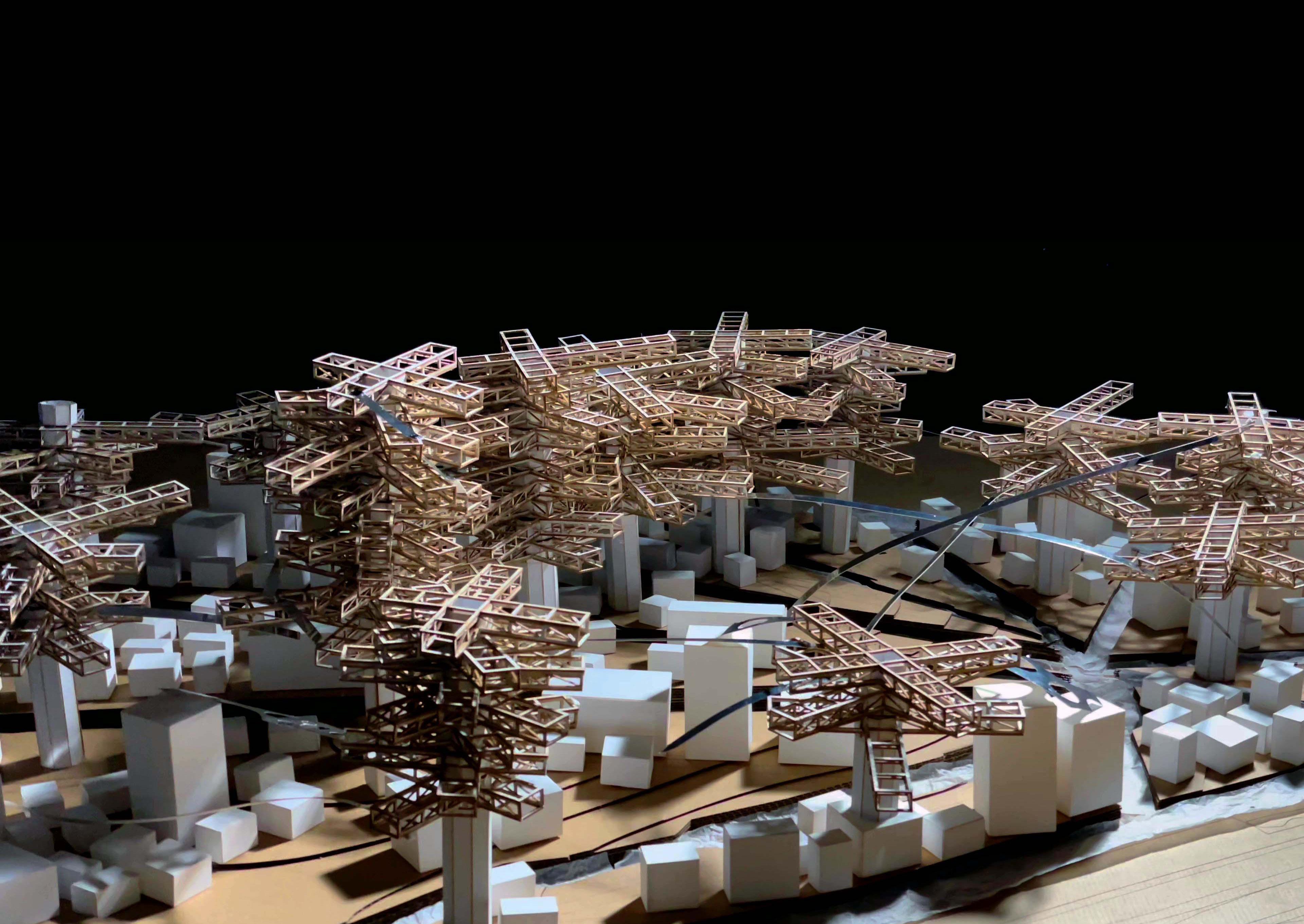 As the flooding situation becomes severe, the structure will start to build on the existing structure by adding truss units on the top and side of the tower as connection bridges for the Kingscross community.