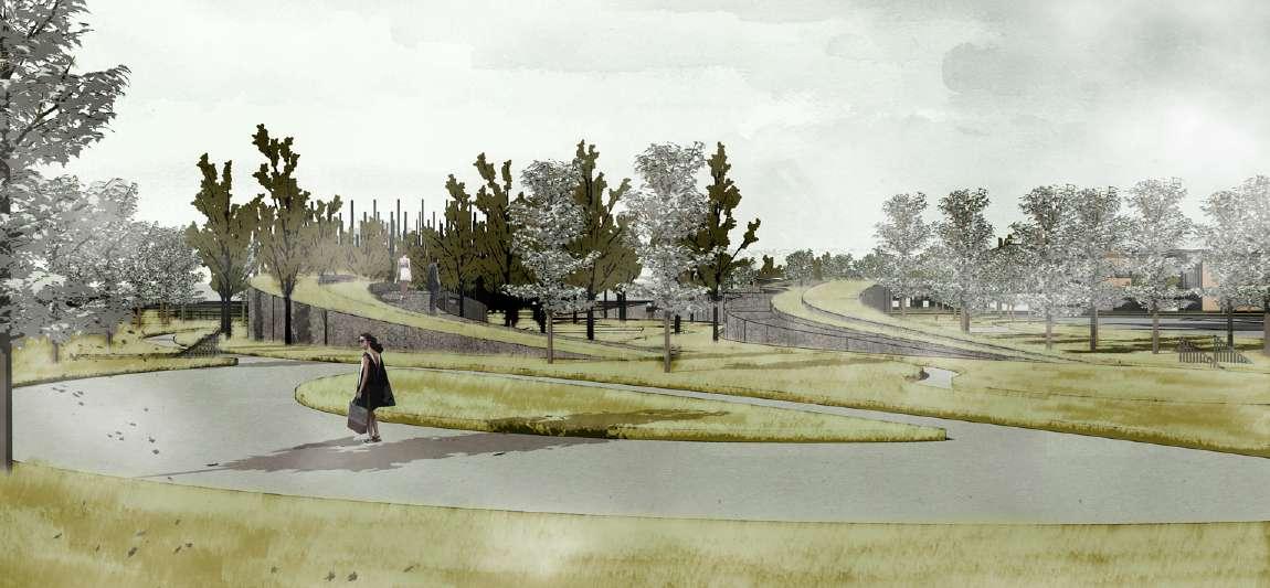To ensure that the bond between the memorial spaces is not cut off, the traffic from the central block to the museum area is designed underground.