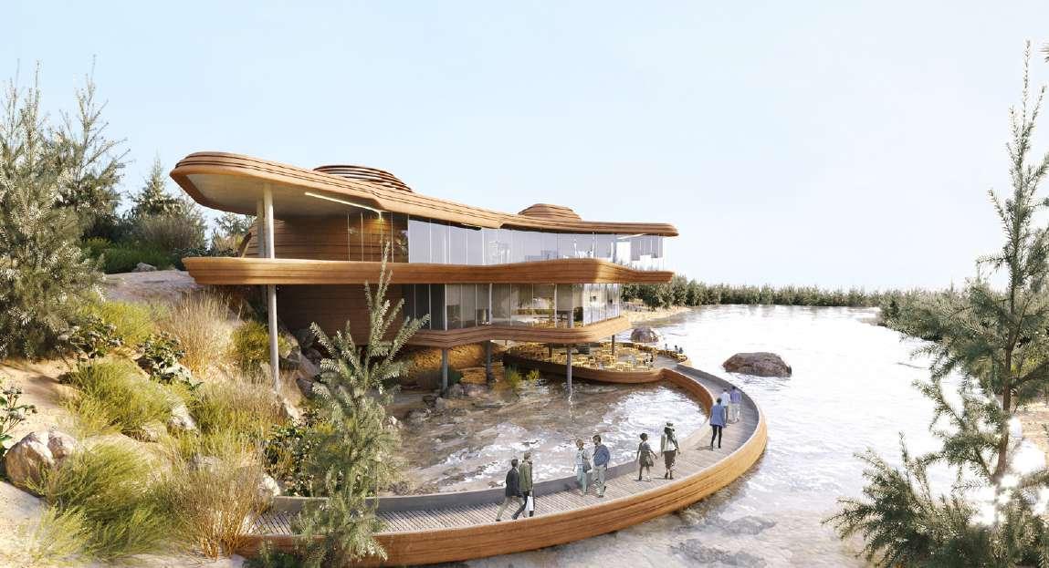 The service building has multiple funtion of restaurant, cafe, entertainment area and 12D cinema.