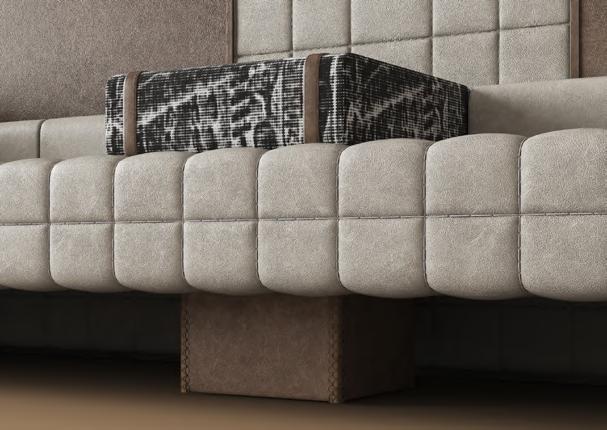 At the same time, the sofa uses the ‘soft’ leather material to contrast the appearance of the ‘hard’ expression, forming a unique fusion of soft and hard feeling. The overall stitching details are used to outline the multi-layered to highlight the "stone”visuals but still able to feel the comfort of the sofa. Functionally, the sofa can meet various application scenarios and usage habits by assembling the middle pillow: when the middle pillow is removed, the middle storage space can be used to place atmospheric artworks (such as plants, etc.) or store items (such as books, magazines, etc.) ); When the middle pillow is covered, it can be used as a coffee table to place tea utensils, etc., or to make the storage space more tidy, which better meets the social scenarios. In addition, the back of the sofa is designed with replaceable details, which can meet the home environment with multiple materials, and expand the tolerance for the use of different styles.