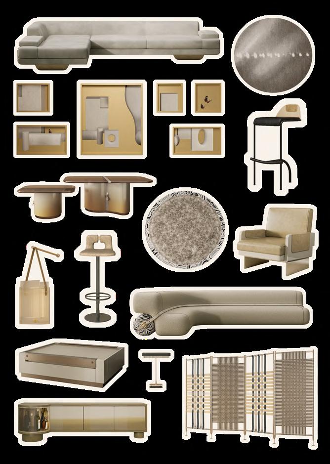 The form of the sofa is derived from the Asian "stacked stone" culture,which is a form that symbolizes blessings and wishes, thereby constituting a unique metaphor effect.