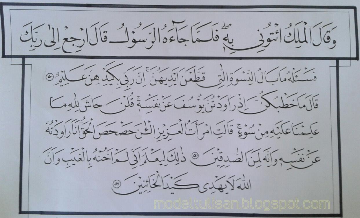 Pesannya, setidaknya kalau kamu bersungguh-sungguh dan dibarengi niat pantang menyerah pasti bakal bisa masuk di LEMKA [Lembaga Kaligrafi] atau bahkan bisa lebih sukses dari aku. Dan teruntuk tugas besar kali ini kamu nggak usah banyak tanya tentang tujuan dan maksudnya gimana. aku cuma pingin lihat karyamu, dan dari situ bakal terlihat sebesar apa niatmu dalam berkaligrafi.