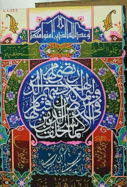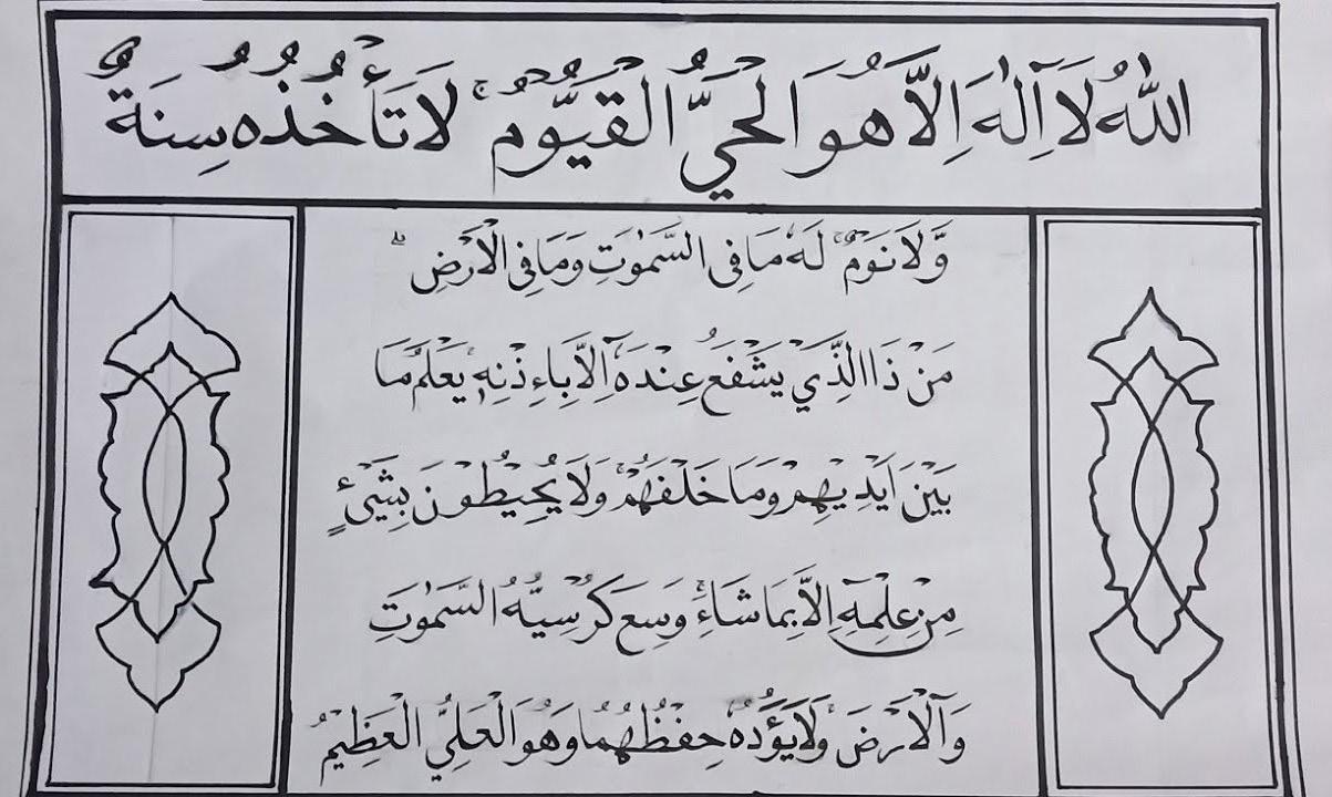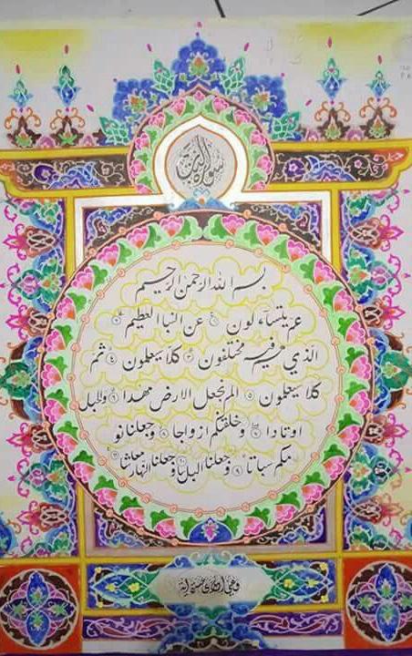 Hiasan mushaf adalah jenis tulisan naski yang dihias pada sisi-sisinya. Yang jelas dari contoh-contoh yang aku kasih coba dilihat sekiranya gimana mereka bisa buat ornamen kaya gitu.
