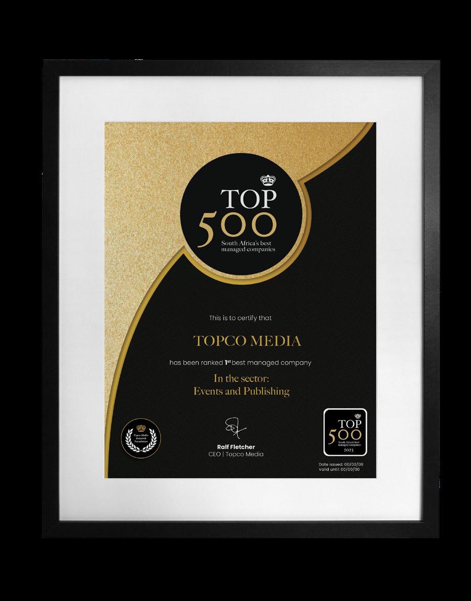 As South Africa’s leading research and publishing company, Topco has been at the forefront of businessto-business content and events for over 20 years. Our expertise lies in evaluating and recognizing topperforming companies through our publications and events.
