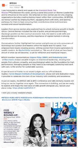 We are proud to introduce new tools that make this event a catalyst for growth: from Expresso, our live networking platform helping delegates connect and collaborate in real time, to business matchmaking designed to help female entrepreneurs access markets and build strategic partnerships. In addition, through our partnership with Hopin, we are thrilled to welcome over 50,000 past attendees of our online conferences into the virtual experience, enabling women across Africa and beyond to network, learn, and exchange ideas without borders. In 2025, our reach extends far beyond the physical event. Whether in Johannesburg or online, our goal is to ensure that this conference
