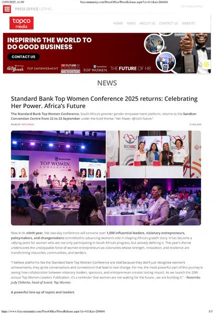 We are proud to walk this journey alongside a coalition of leaders, including Standard Bank, Topco Media, and our partners, all committed to driving gender empowerment and sustainable economic growth.