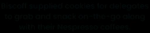 Biscoff supplied cookies for delegates to grab Nespresso coffees. and snack on-the-go along with their