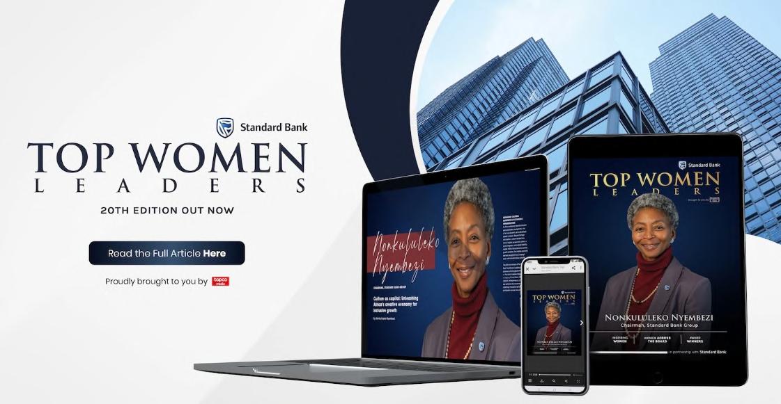 The 20th anniversary edition of Standard Bank Top Women™ Leaders, brought to you by Topco Media. Backed by over 20 years of research, the annual Top Women Leaders publication is the country’s authoritative source on top gender empowered companies.