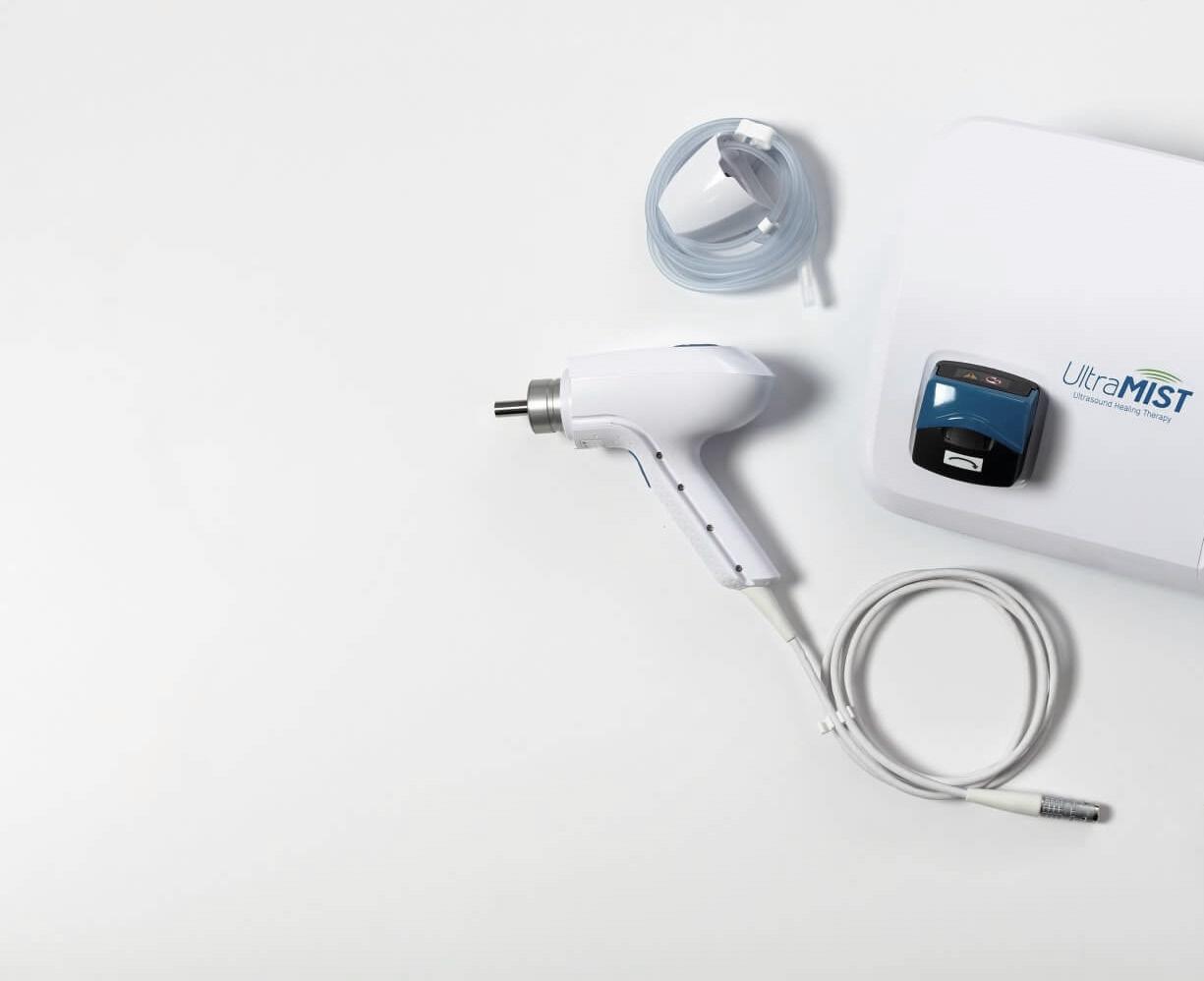 Experience pain-free treatment through a saline mist that reduces and removes bacteria while promoting healing. UltraMIST is a non-contact, lowfrequency ultrasound that painlessly promotes healing when administered by any trained health care professional.