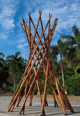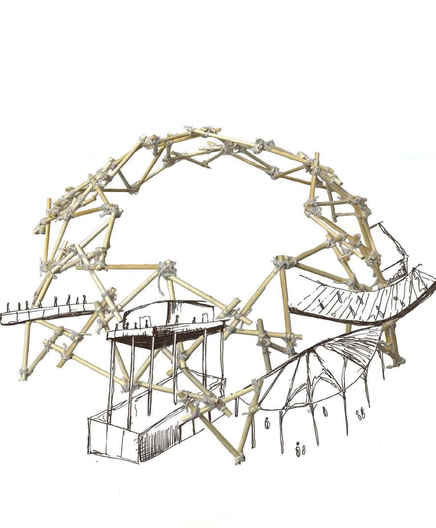What I learned from my first variation is an understanding on the scale of my bamboo members, I used members 7-8 meters long which was not realistic as the bamboo used in construction would range from 4-6 meters. This variations form also wasnt very sturdy.