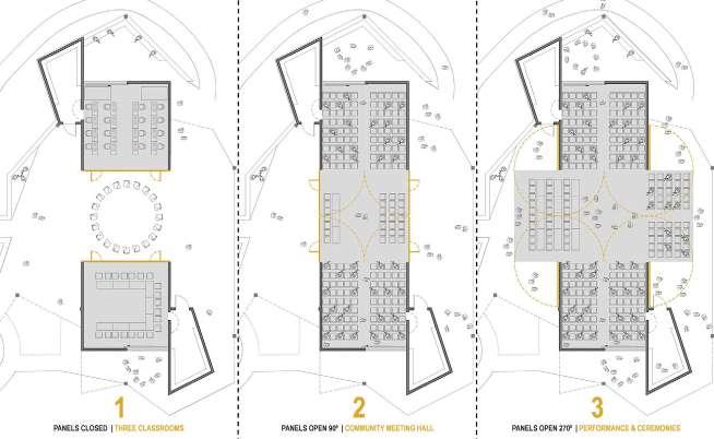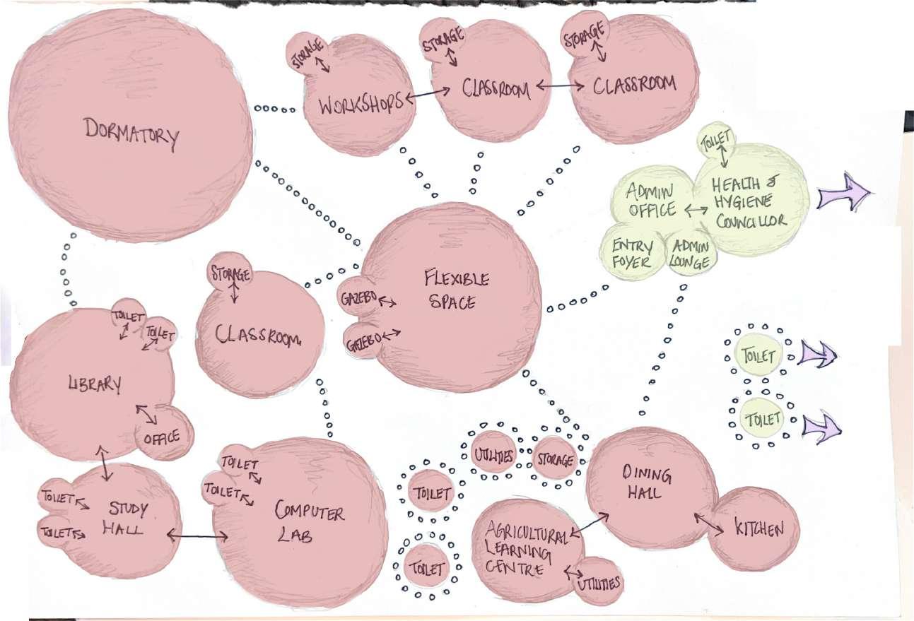 I started with a central flexible space of which use will change as different programmes fluctuate througout the day; Outdoor learning area during class time, Playground during break, Assembly hall and community gathering space.