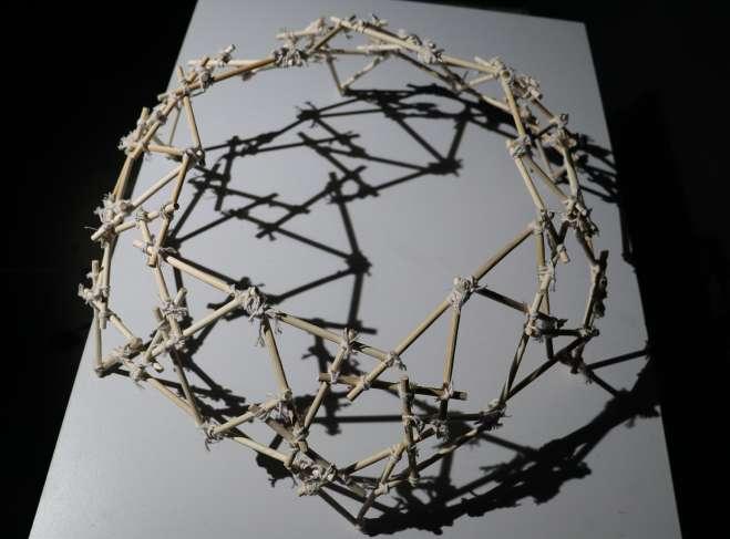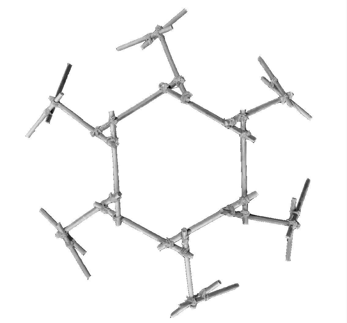 I then made a structure using shorter 4m members, added more members creating this 5 pointed star shape. I found it made the hexagonal skylight shape more precise and the structure itself a lot more sturdy and stable.