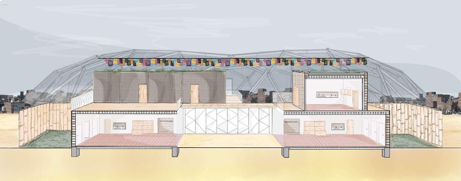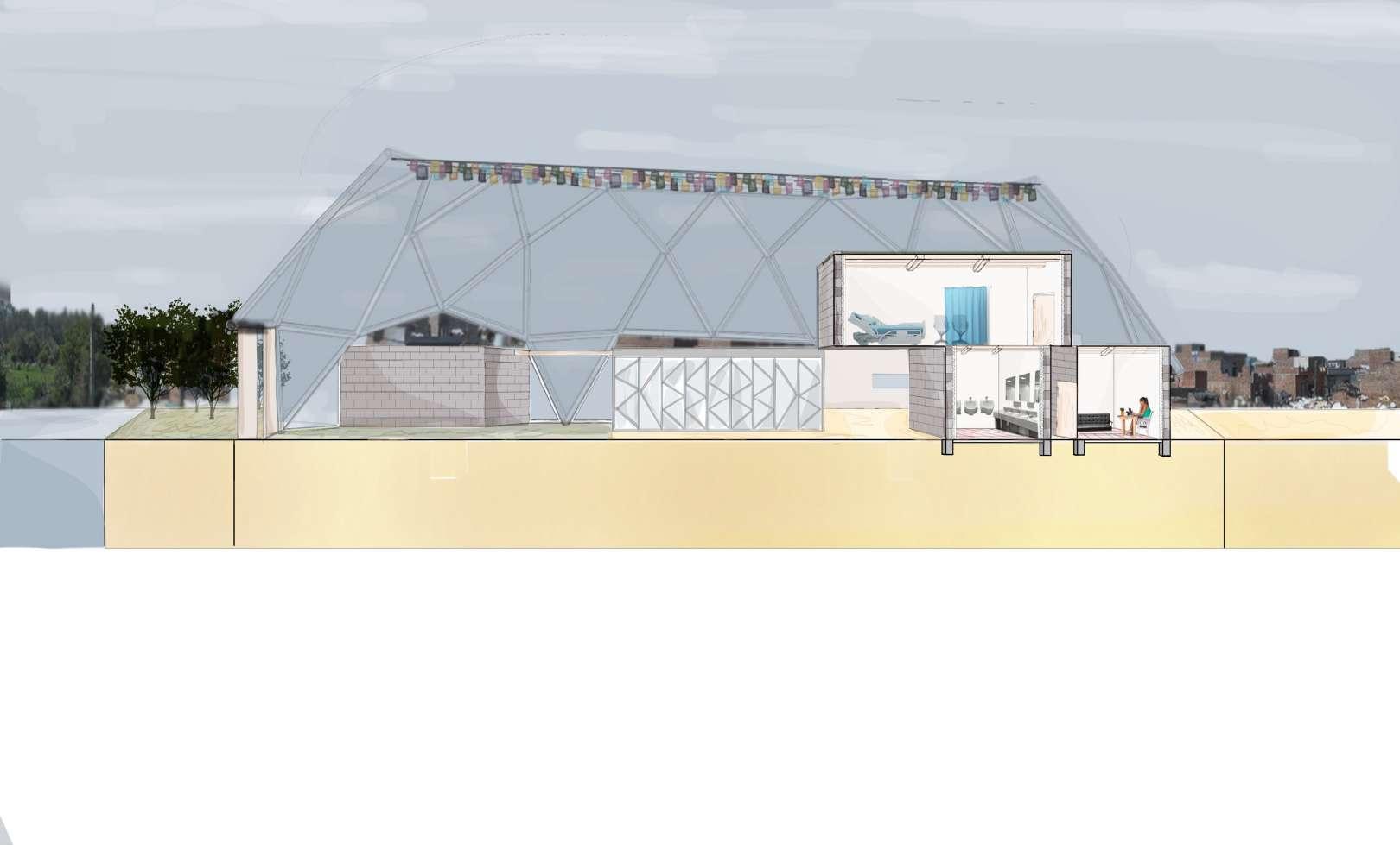 Working with the large dome structure, I considered different ways in which it can be used as a body. I decided to focus on my idea of the internal units protruding from the dome, allowing interaction between the inside and outside and emphasising the dome as an interesting architectural feature.