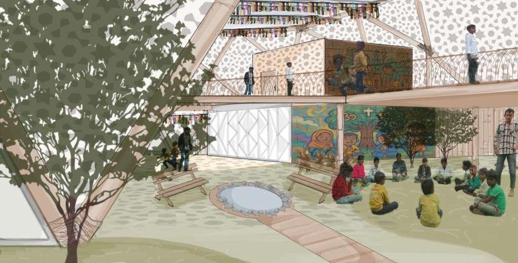 Drawing from local craftsmanship, the incorporation of jaali screens also offers an opportunity to involve community artisans in the school’s construction, strengthening ties to the surrounding area.