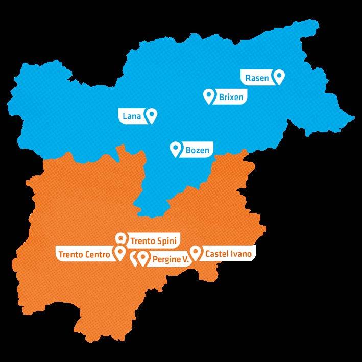 In Südtirol ist TopHaus mit Standorten in Bozen, Brixen, Lana und Rasen vertreten. Im Trentino finden Sie uns in Trient – Trento Centro und Trento Spini, zweimal in Pergine Valsugana – davon ein Standort als reiner Baumarkt – sowie in Castel Ivano.