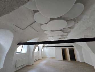 gestaltet: Hier befinden sich die Öffnungen im oberen Fassadenbereich, wodurch diffuses Tageslicht gewährleistet wird, ohne die Funktionalität der Ausstellungsflächen zu beeinträchtigen. Daraus entsteht ein ausgewogenes Verhältnis zwischen geschlossenen Flächen und Transparenz, das helle, zugleich kontrollierte Räume schafft.