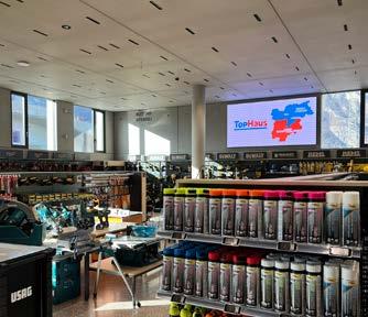Un punto di particolare rilievo è la nuova ferramenta, che completa l’offerta in modo ottimale. Il concetto innovativo permette ai nostri clienti di trovare comodamente materiali da costruzione, utensili, macchinari e colori in un unico luogo – in modo rapido, chiaro e con la consueta competenza di consulenza TopHaus.