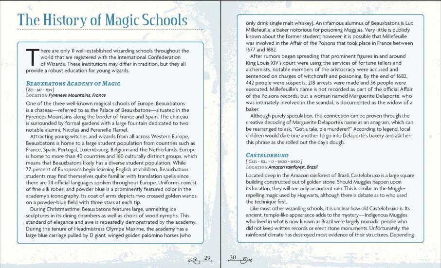 Inside, you'll find an extraordinary assortment of insights and information about how the school works, how it's organized, what classes are taught, who teaches them, what secrets or mysteries might be discovered and much more!