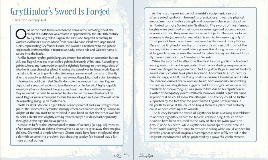 All of the significant historical events that shaped the wizarding world, from Herpo's first breakthrough through the final adventures of Harry Potter and his friends. Readers will learn about the founding of Hogwarts, the beginnings of Quidditch and its rules, the creation of the sword of Gryffindor and much more. It's the only book of its kind to delve so deep into the history and mysteries of the world of witches and wizards.