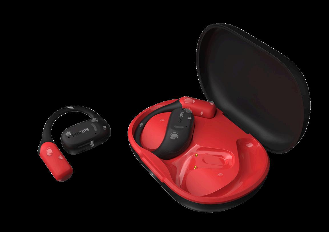 LT42257 | TAA6709| Philips Sports open-ear sportshørepropper med innebygd synlighetslys Få trådløse komfortable ørepropper med open-ear funksjon! Den myke kroken holder dem godt på plass, selv når du beveger deg. Den åpne designen gjør at du både kan høre musikken og ta inn lyd fra omgivelsene. Lyden rettes mot øregangen uten å tette til. De har IP55-motstand mot svette, fuktighet og støv. Etter 5 minutters lading kan du nyte 1 times ekstra lytteglede. Størrelse: 105 x 127 x 33 mm